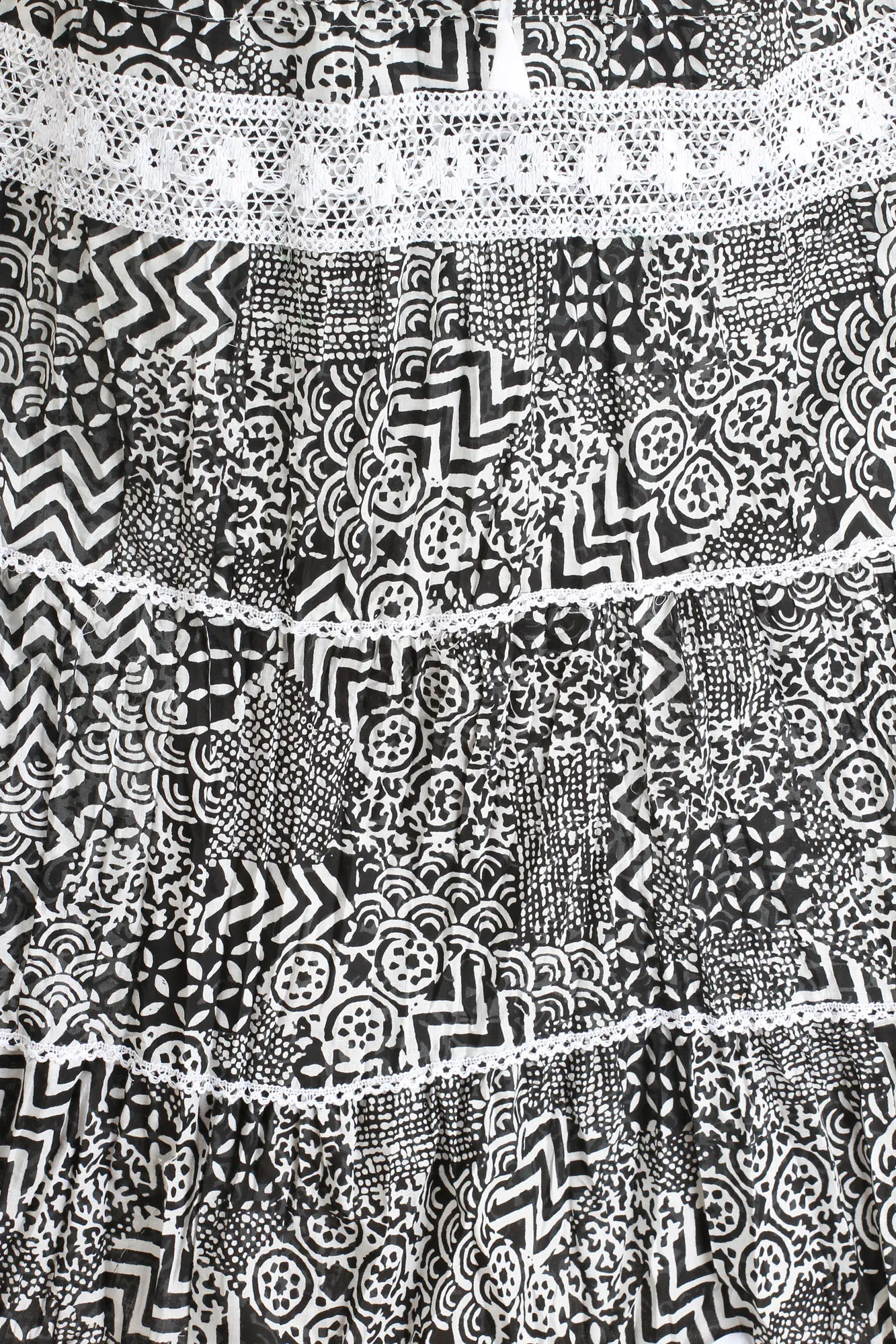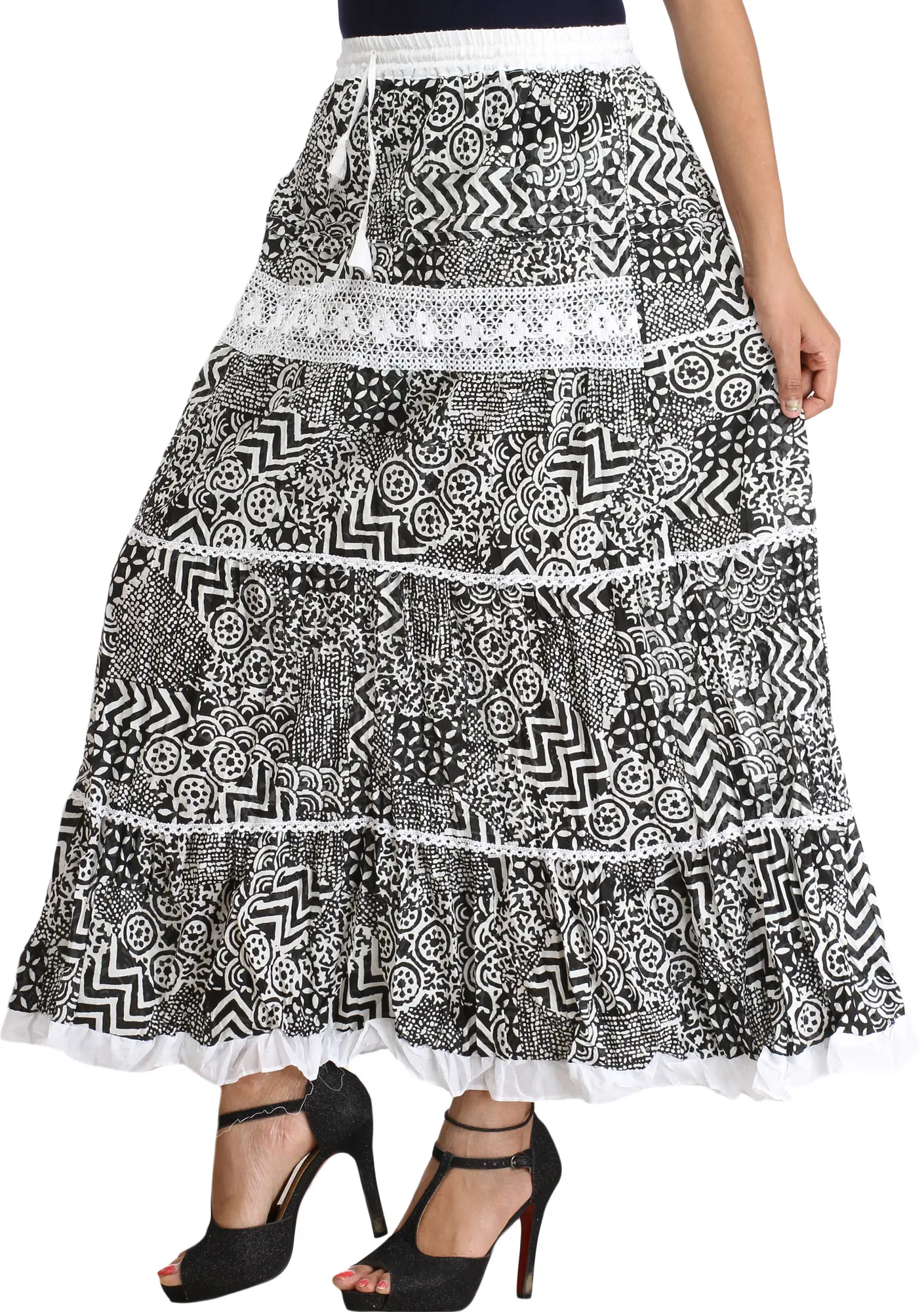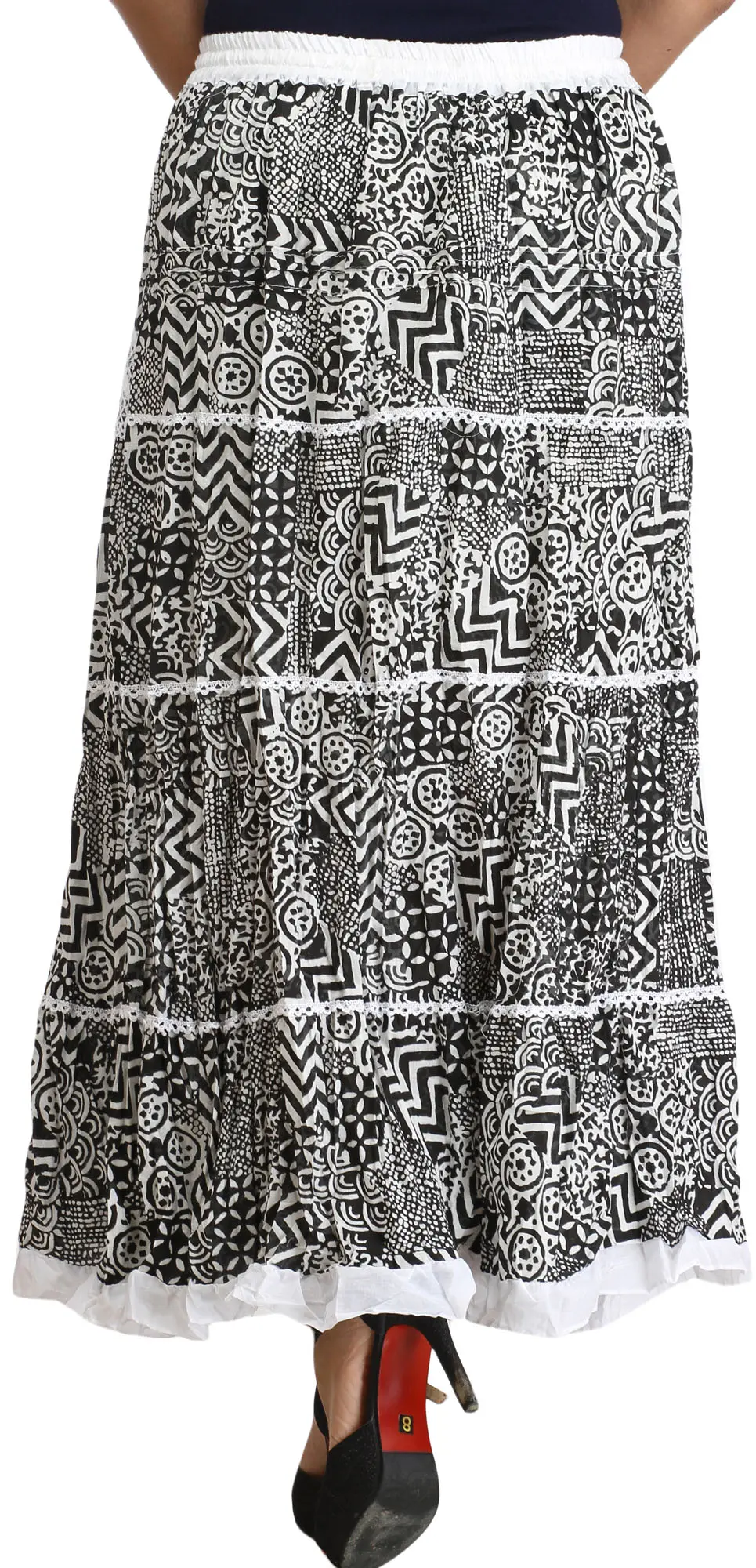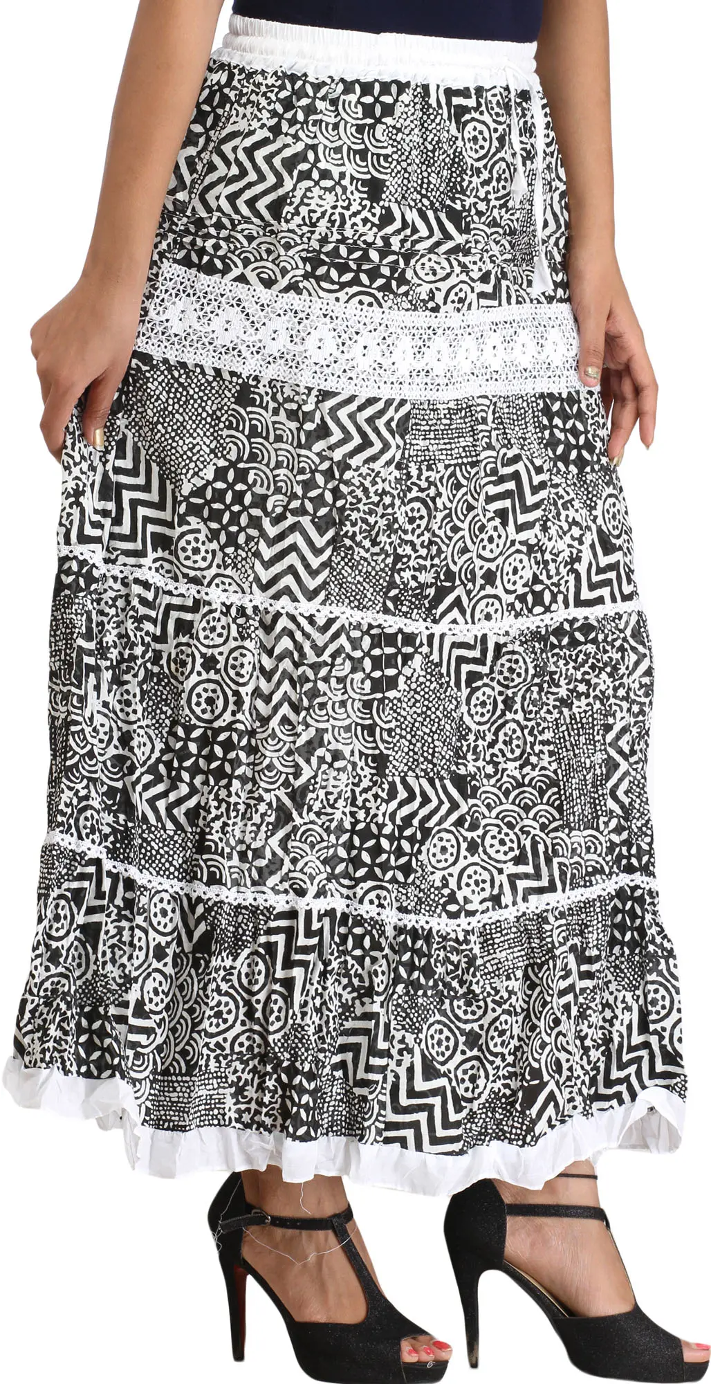 With this striking black and white long skirt with a collage print, embrace an impressive fusion of style and comfort. This skirt, made from pure cotton, seamlessly blends refinement and artistic flair. The monochrome palette emanates adaptability, allowing for easy incorporation into your ensemble. It is perfect for both casual and semi-formal gatherings, with a sleek and modern look. The breathable fabric keeps you comfortable all day, and the distinctive collage pattern gives a personal touch. This skirt skillfully strikes a balance between style and functionality, allowing you to make a statement without compromising comfort. Use this adaptable wardrobe essential to elevate your everyday look.