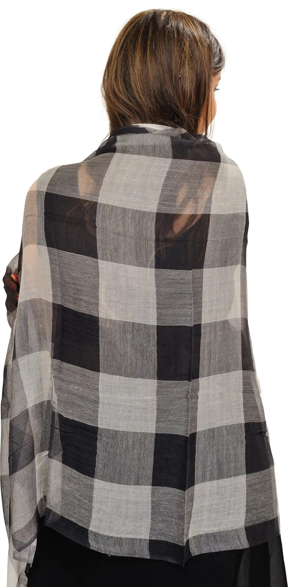 The graphic appeal of the woven checks makes this shawl a standout accessory. The high contrast between the black and white squares lends a modern edge to the traditional pattern. Pair it with a simple monochrome outfit to let the shawl take center stage, or use it to add a pop of pattern and texture to a more muted wardrobe. It's an ideal companion for a crisp autumn day, adding a layer of warmth and style to your favorite coat or sweater. In cooler months, it can be a chic alternative to a traditional scarf, offering broader coverage and a more dramatic silhouette. This shawl is more than just an accessory; it's a statement of refined taste. The quality of the pure wool speaks to its durability and the lasting appeal of natural fibers. The intricate weaving technique ensures the pattern is integrated seamlessly into the fabric, creating a piece that is both beautiful and well-made. Embrace the enduring style of this black and white check shawl and experience the perfect blend of comfort, elegance, and classic design. Its adaptability makes it a wardrobe essential that you'll reach for time and time again. ––––––––––––––––––