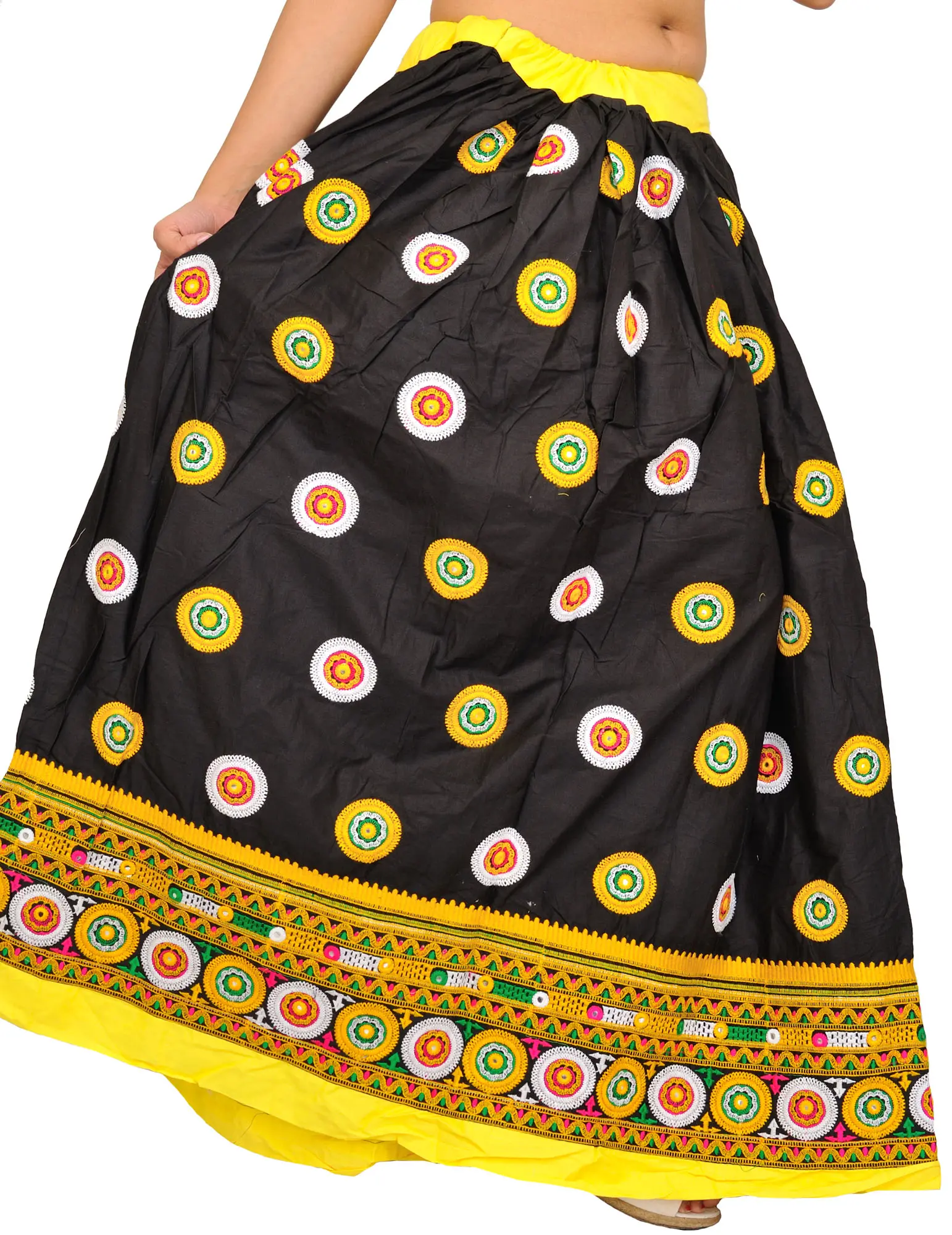 Black and Yellow Ghagra from Gujarat with Embroidered Chakras and Mirrors