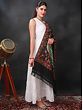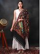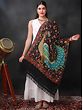 This captivating woolen shawl in black beauty is embellished with fine Aari hand embroidery. It is more than simply a piece of cloth, adorned with magnificent flower and peacock patterns. It is a piece of Kashmir's rich past, sewn with love and craftsmanship. This amazing work of art offers a deep dive into a vibrant tradition with its unique combination of unmatched craftsmanship, cultural relevance, and beautiful colors. It provides a real-life illustration of the intricate craftsmanship and complex customs of the area.