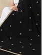 Jamawar- Pashmina shawls that wrapped around the torso and extended to the floor, adding regalia to the attire, is a style of Pashmina beloved of the Indian royals, who wrapped themselves the luxury and comfort of these shawls and flaunted their elevated taste in fashion. Recreating the richness of Jamwars, this pure Pashmina shawl in an alluring black shade offers you a chance to experience the grandeur of traditional Indian wear. The soft field of the shawl is sparsely covered in tiny floral patterns and is outlined by an ornate floral border. Large arabesque patterns, in the style of Konia (motifs placed on the Kona or corner), infuse the Pashmina with a dramatic element, crafting a magnificent luxury piece fit for royalty.