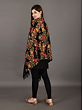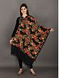 Aari Embroidered Black Wool Stole: Avian & Floral Motifs