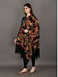 Jet-Black Pure Wool Stole with Aari Hand-Embroidered Phool Bail