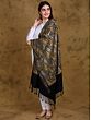 Black-Onyx Pure Pashmina Stole with Sozni Embroidered Floral Booits and Kani Border