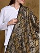 Wrap yourself in the opulence of the Black-Beauty Kashmiri stole, a masterpiece of craftsmanship and design. This stunning stole is crafted from the finest wool, ensuring both warmth and luxurious comfort. The rich black base provides a striking canvas for the intricate all-over golden paisley Aari embroidery, a testament to the artistry of Kashmir's skilled artisans. Each paisley motif is meticulously hand-embroidered, creating a captivating display of detail and elegance. The golden threads shimmer subtly, adding a touch of sophistication that complements any ensemble. This stole transcends mere fashion; it is a statement of refined taste and an heirloom-worthy piece.