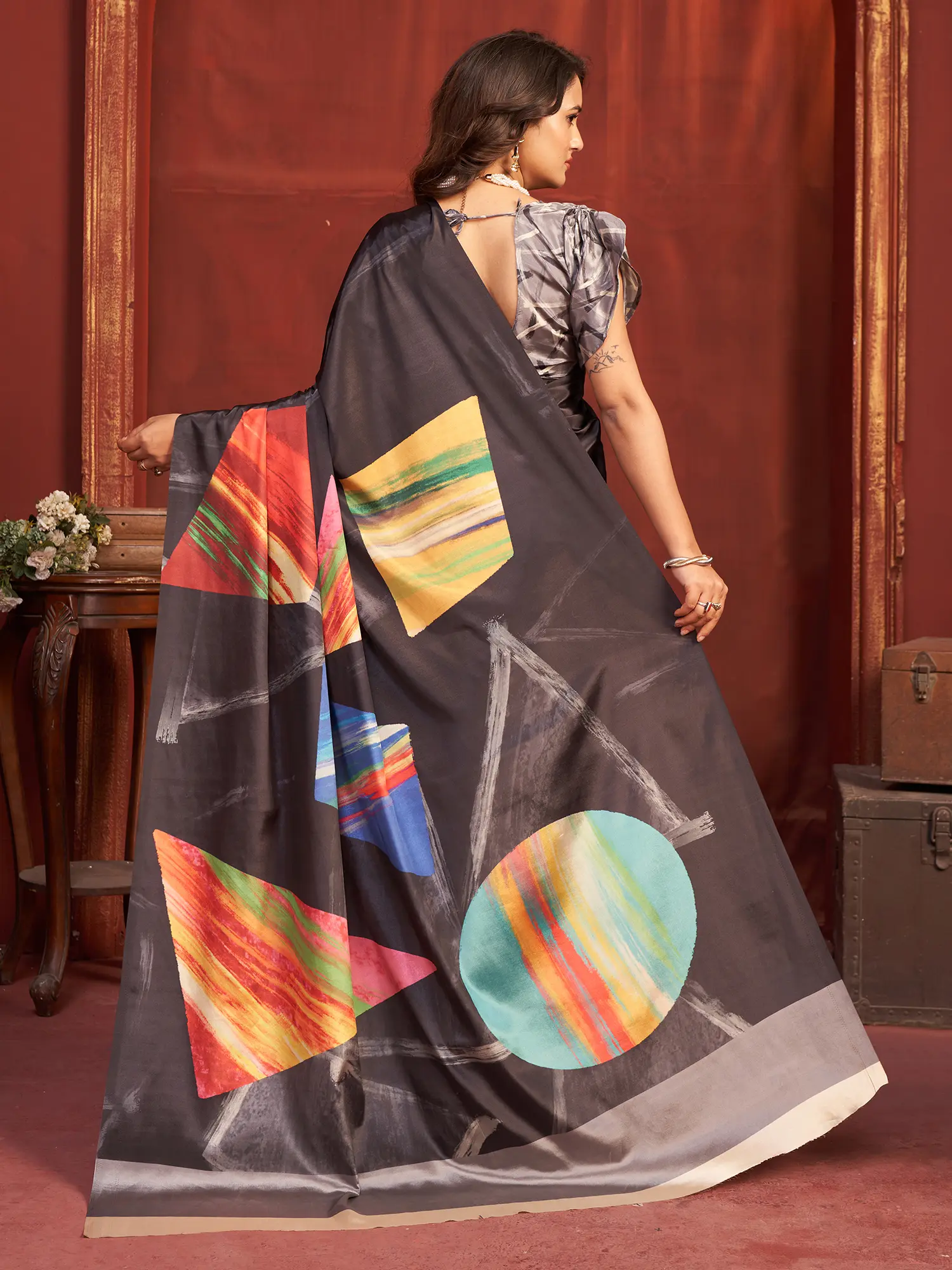 Women's Black Crepe Silk Classic High Print Saree Traditional Designer Festive Stylish Lightweight Sari