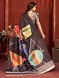 Black Crepe Silk Penetration Print Saree For Women's Elegant Designer Light weight Partywear Statement Sari