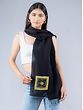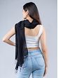 Presenting you this stunning black pashmina silk stole which has been decorated with yellow beaded embroidery with flower and geometrical motifs. The beauty of this stole is highlighted by its beaded embroidery and the tassels on the edges of this stole give movement and elegance to the stole.