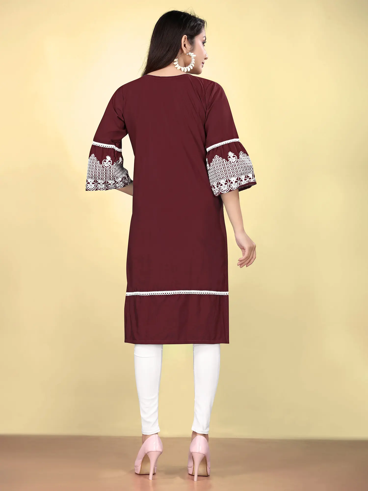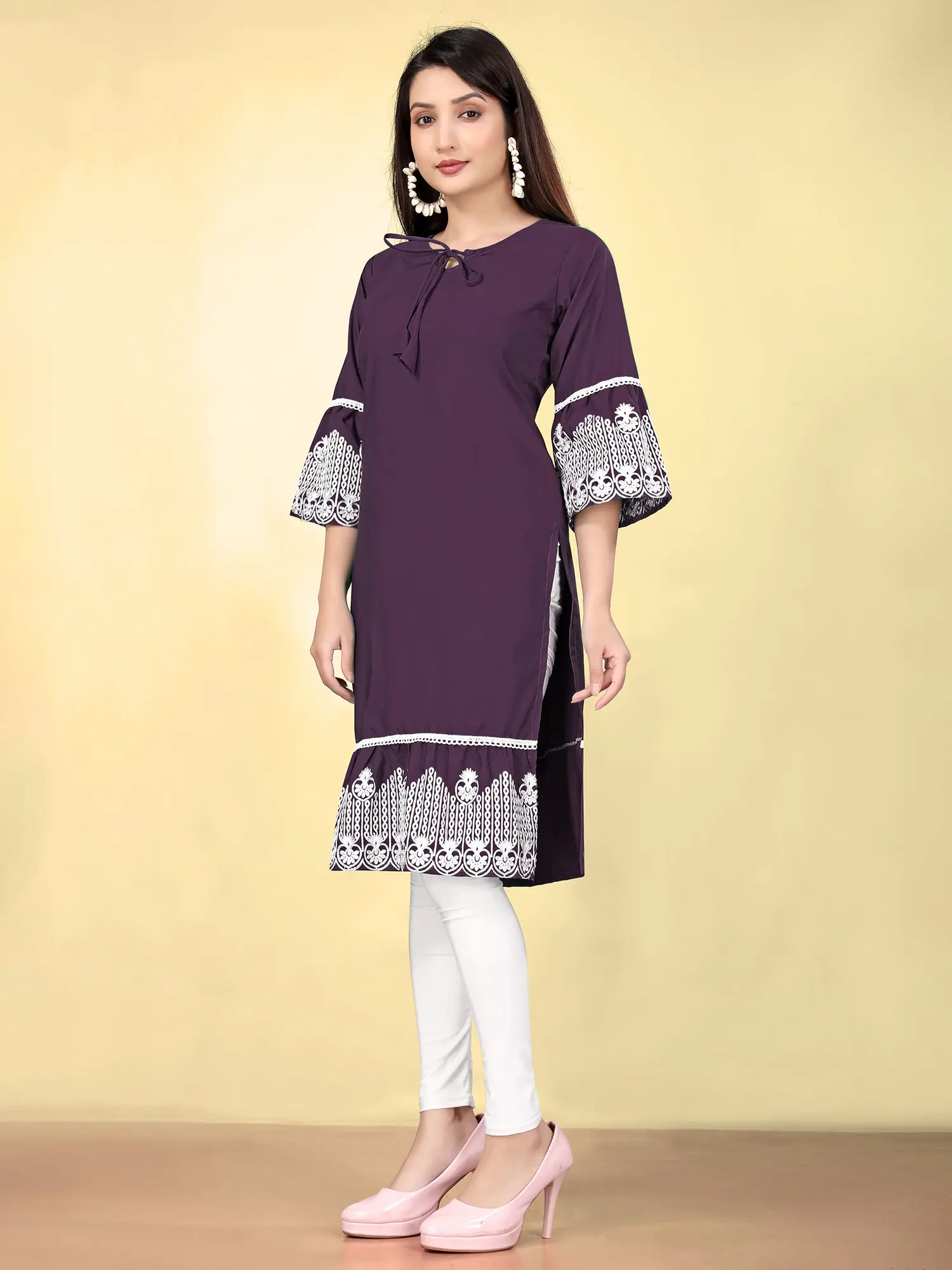 Short Kurti with Chikankari Embroidery on Neck and Printed Bootis