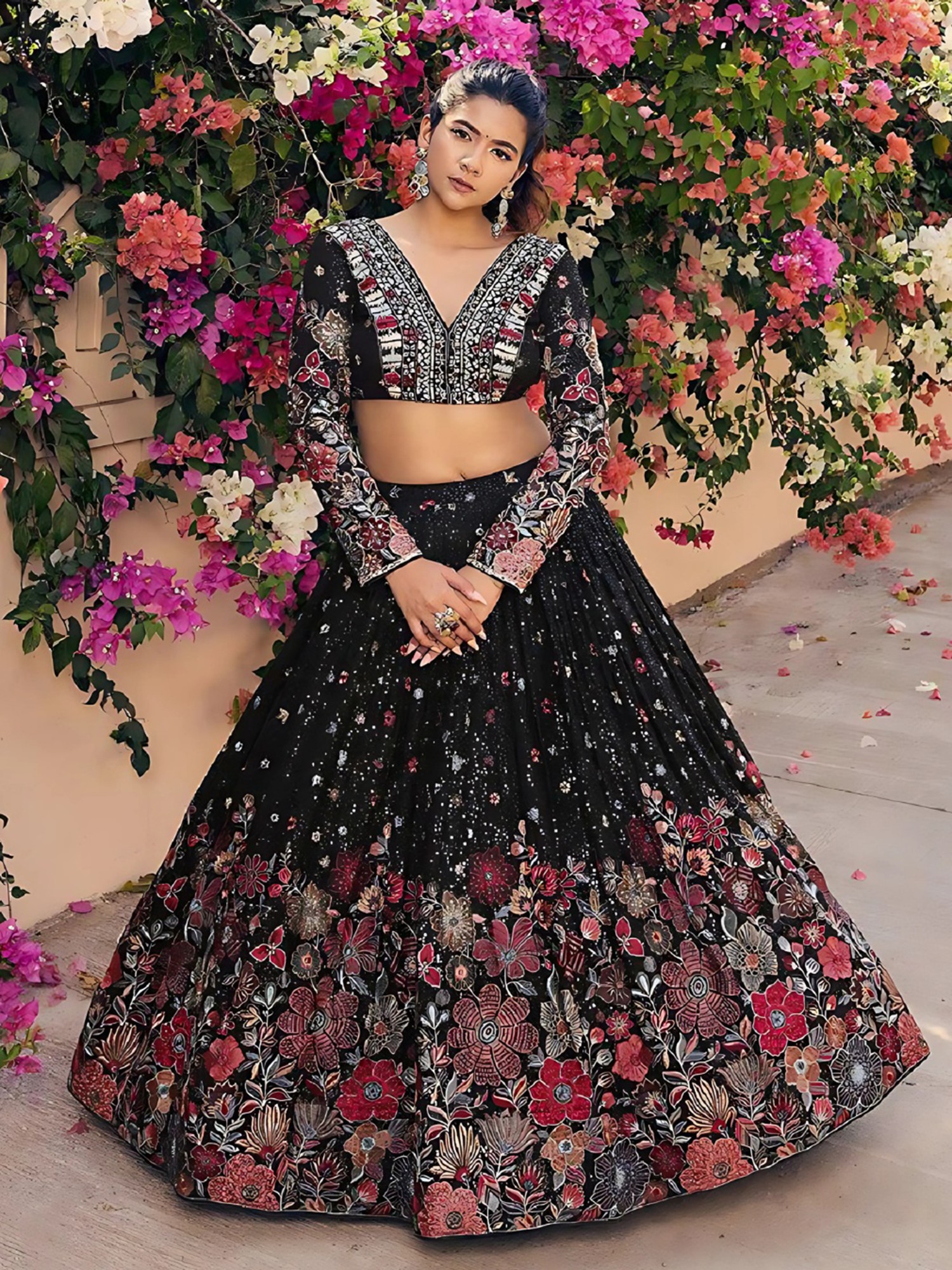 Paradise-Pink Soft Net All Over Thread Work Embroidered Lehenga Choli with Scalloped Dupatta