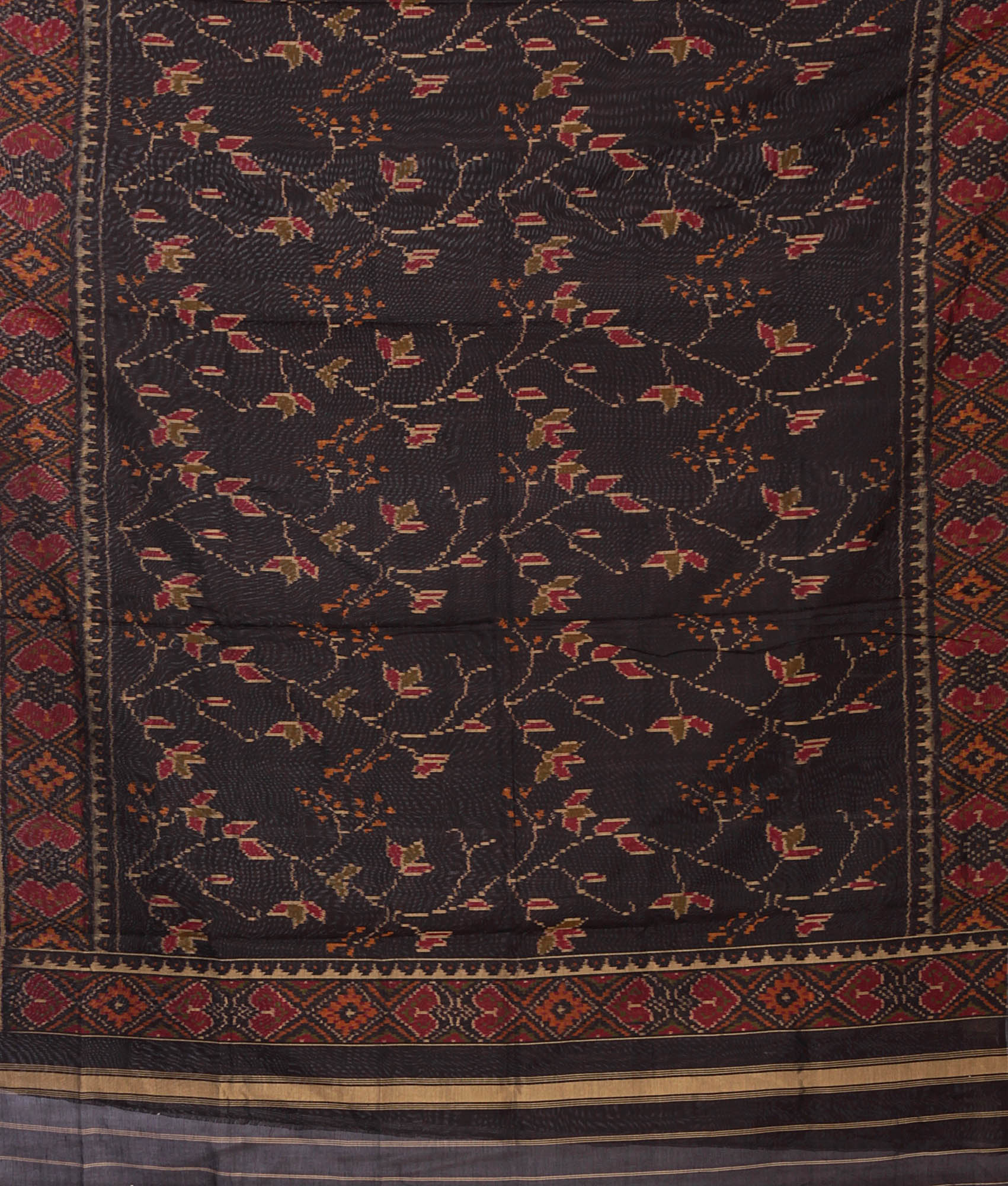Pure Silk Patan Patola Handloom Saree from Gujarat with Ikat Weave and Contrast Red