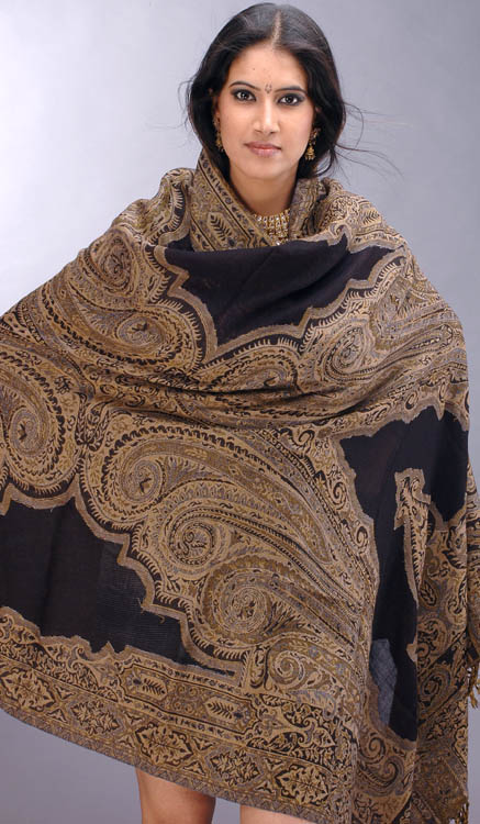 Reversible Jamawar Shawl from Amritsar with Woven Flowers
