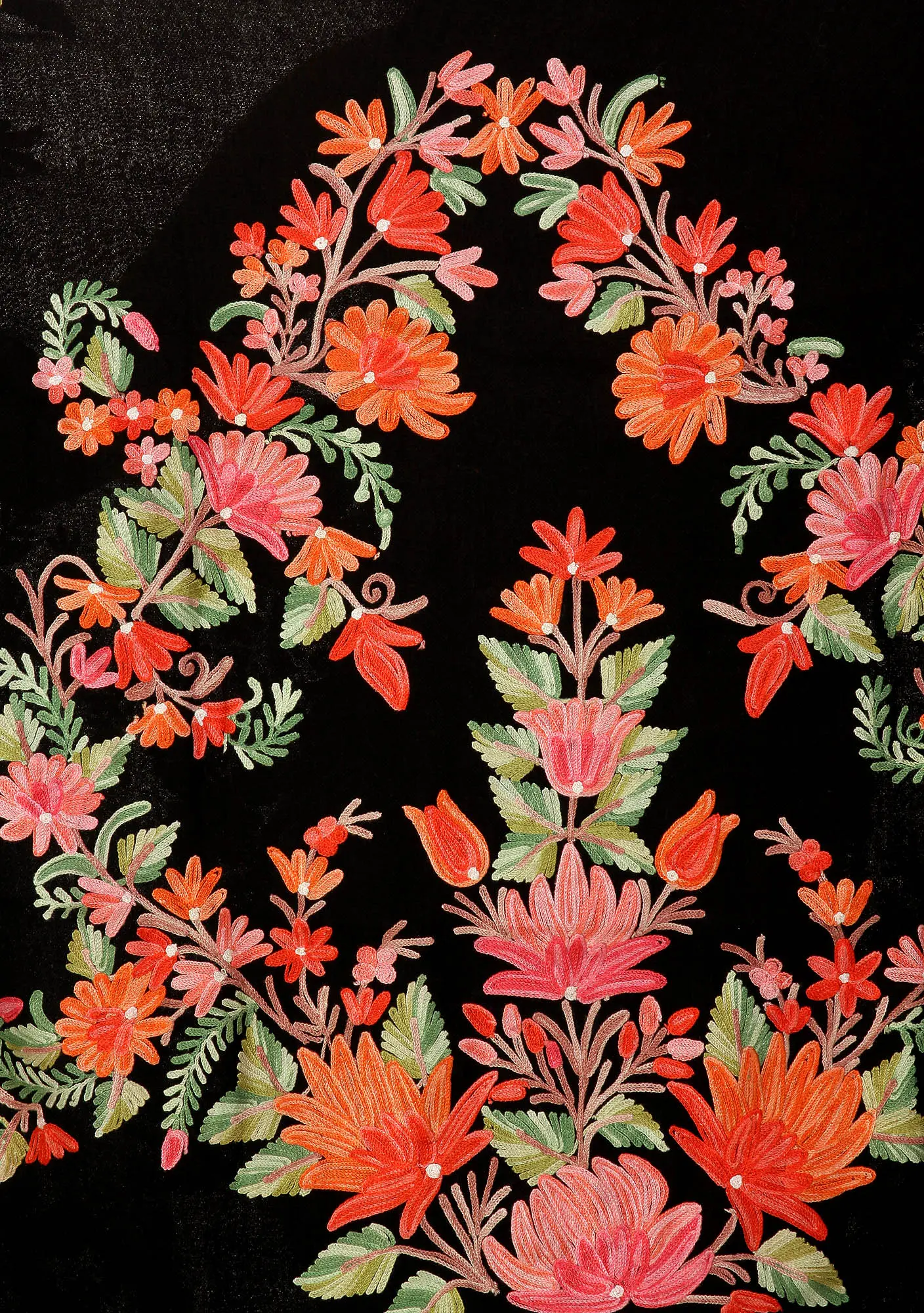 Black Kashmiri Shawl with Floral Aari Embroidery