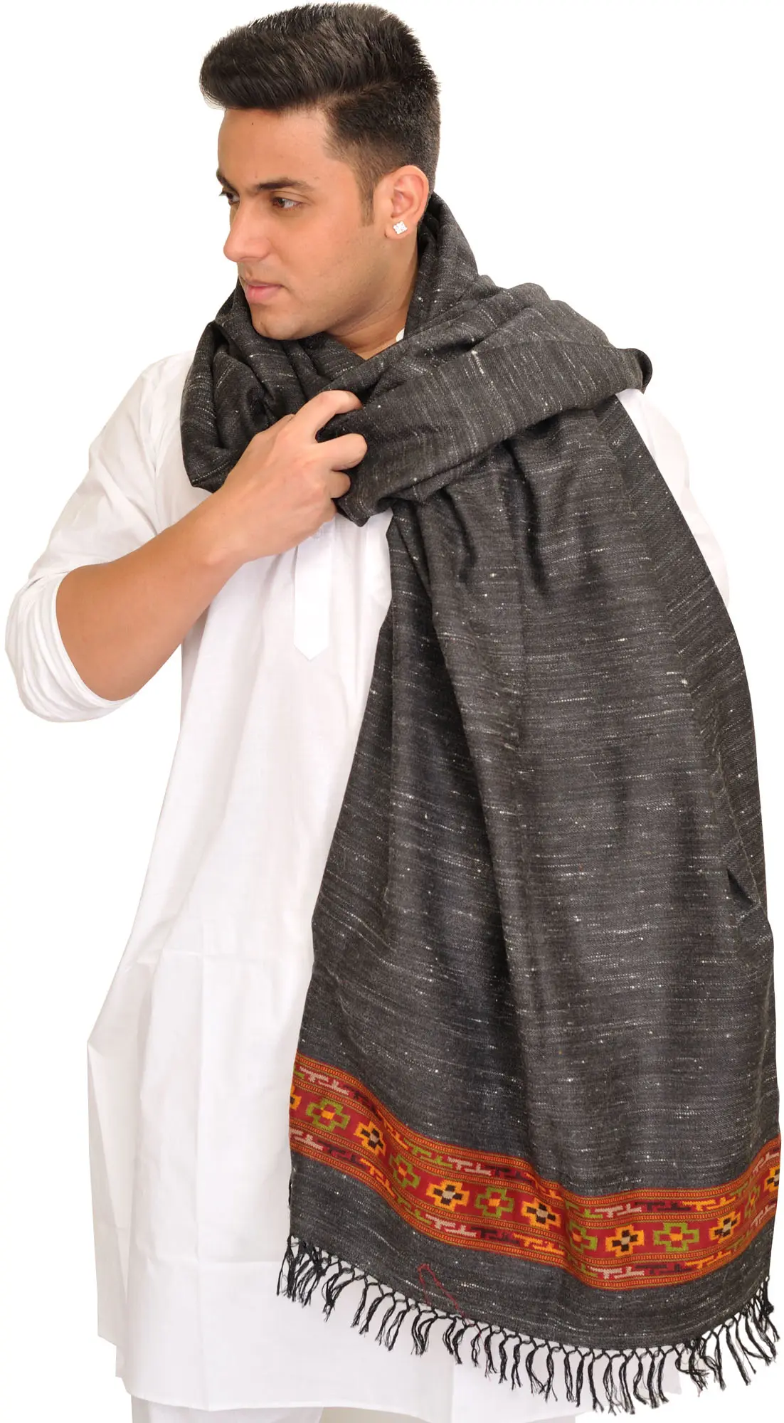 Handspun Men's Dushala Shawl (Lohi) from Kullu with Embroidered Border
