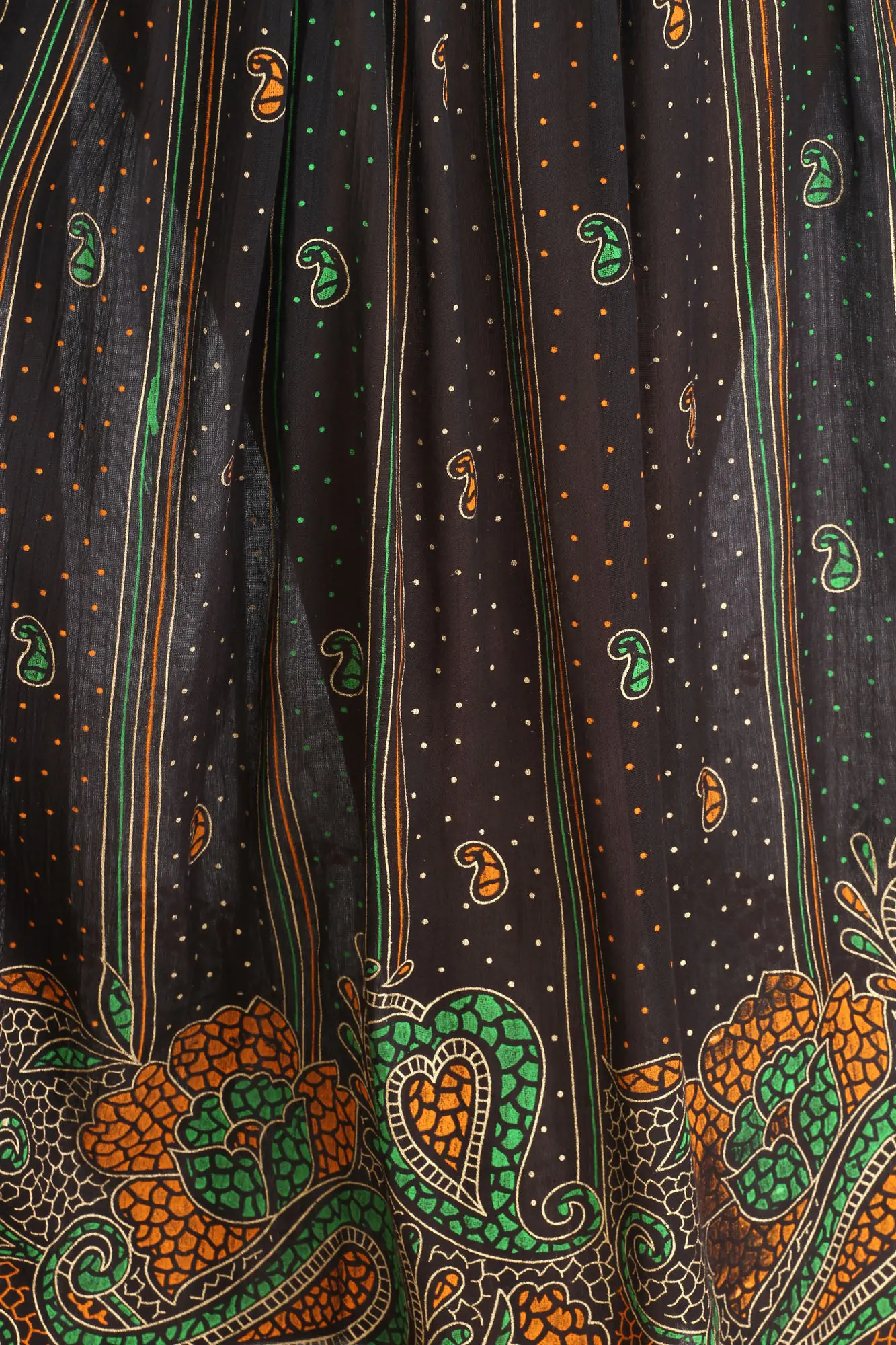 Black Long Elastic Skirt with Printed Paisleys and Bootis