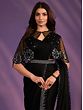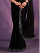 Black Night Crepe Satin Silk Saree And Embroidered Stone Work In Pallu With Blouse