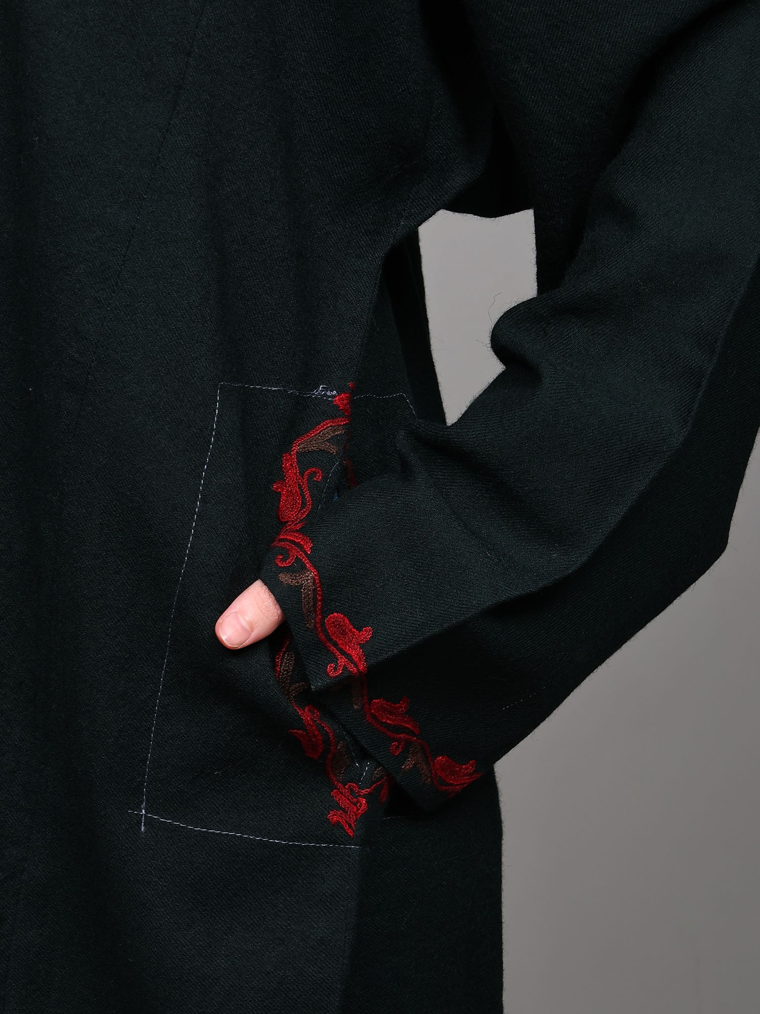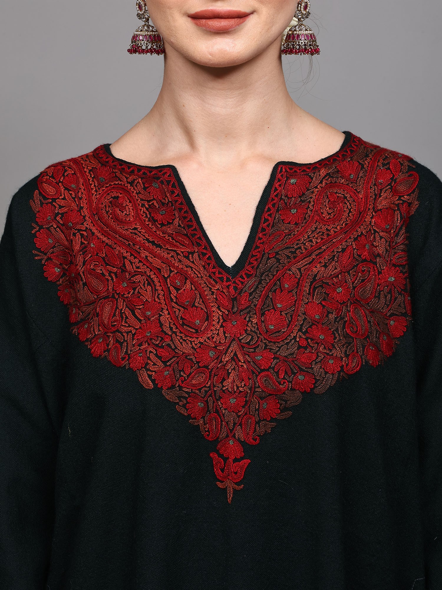 Wool Kashmiri Phiran with Aari Embroidered Paisleys on Neck and Side Pockets