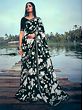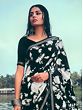 Black-Onyx Digital Floral Printed Matka Silk Saree With Silver Zari Twill Border