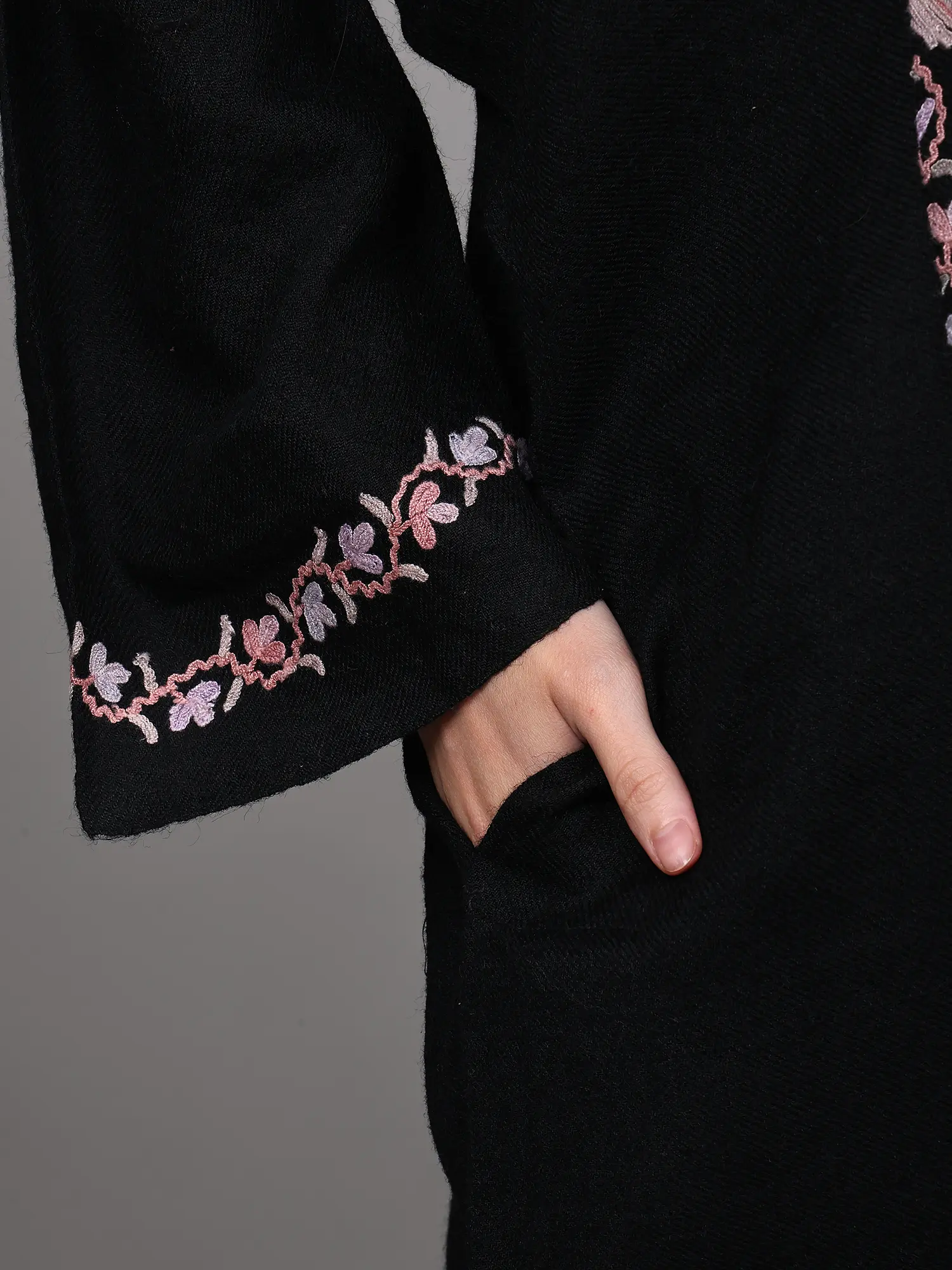 Black-Beauty Aari Embroidered Phiran with Side Pockets from Kashmir