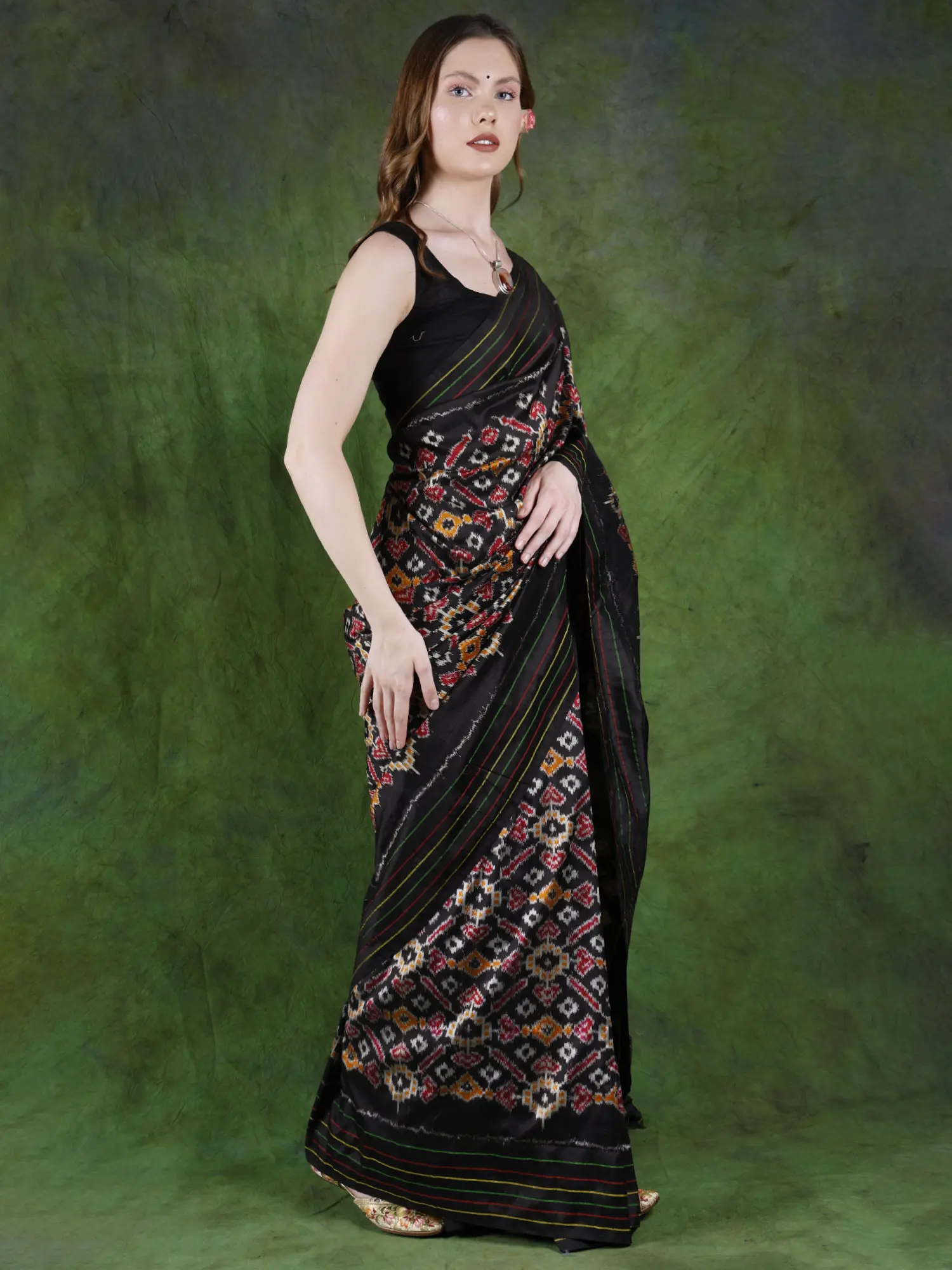 Foliage-Green Pure Silk Paan Patola Handloom Saree from Patan with Ikat Weave