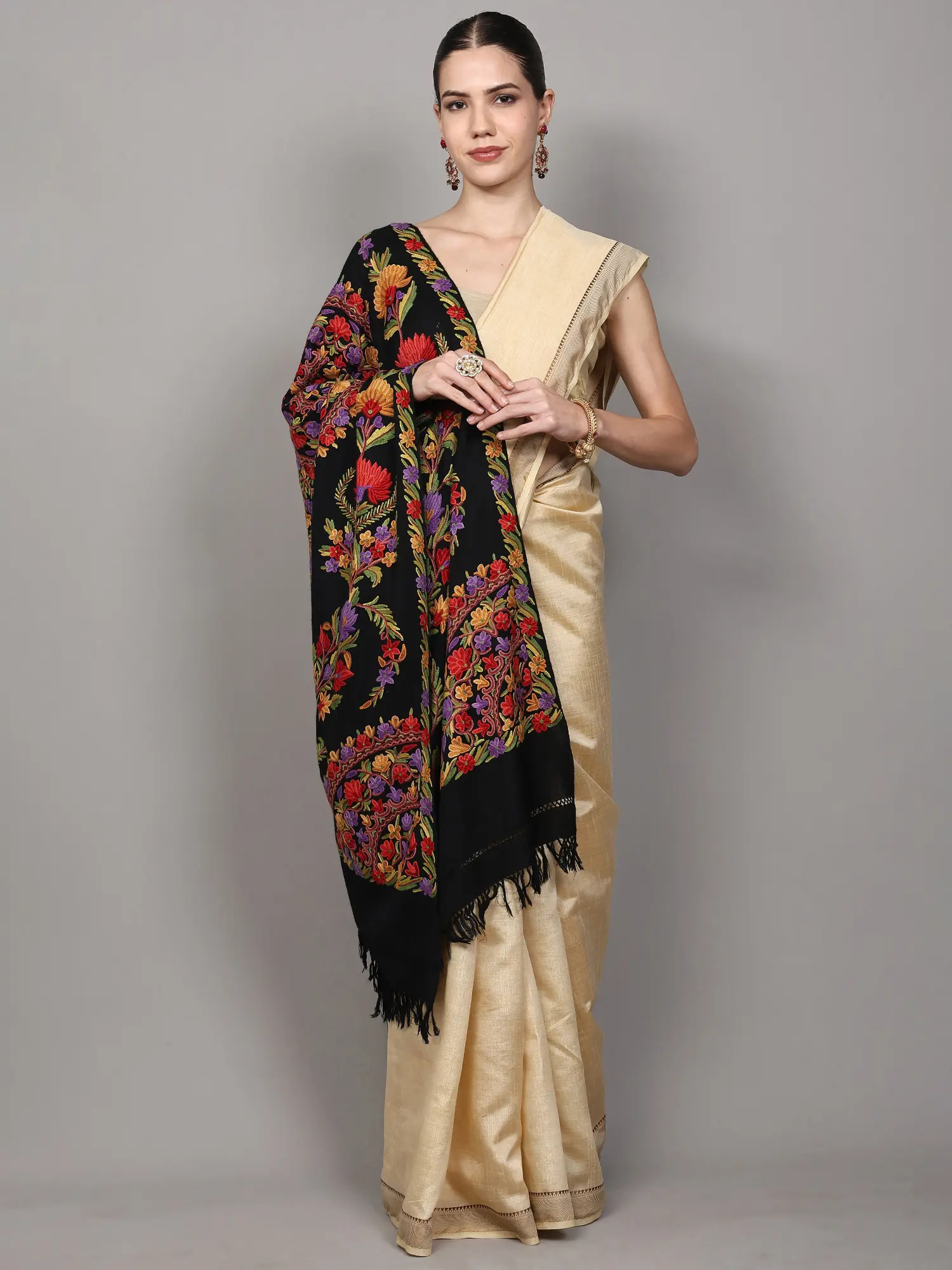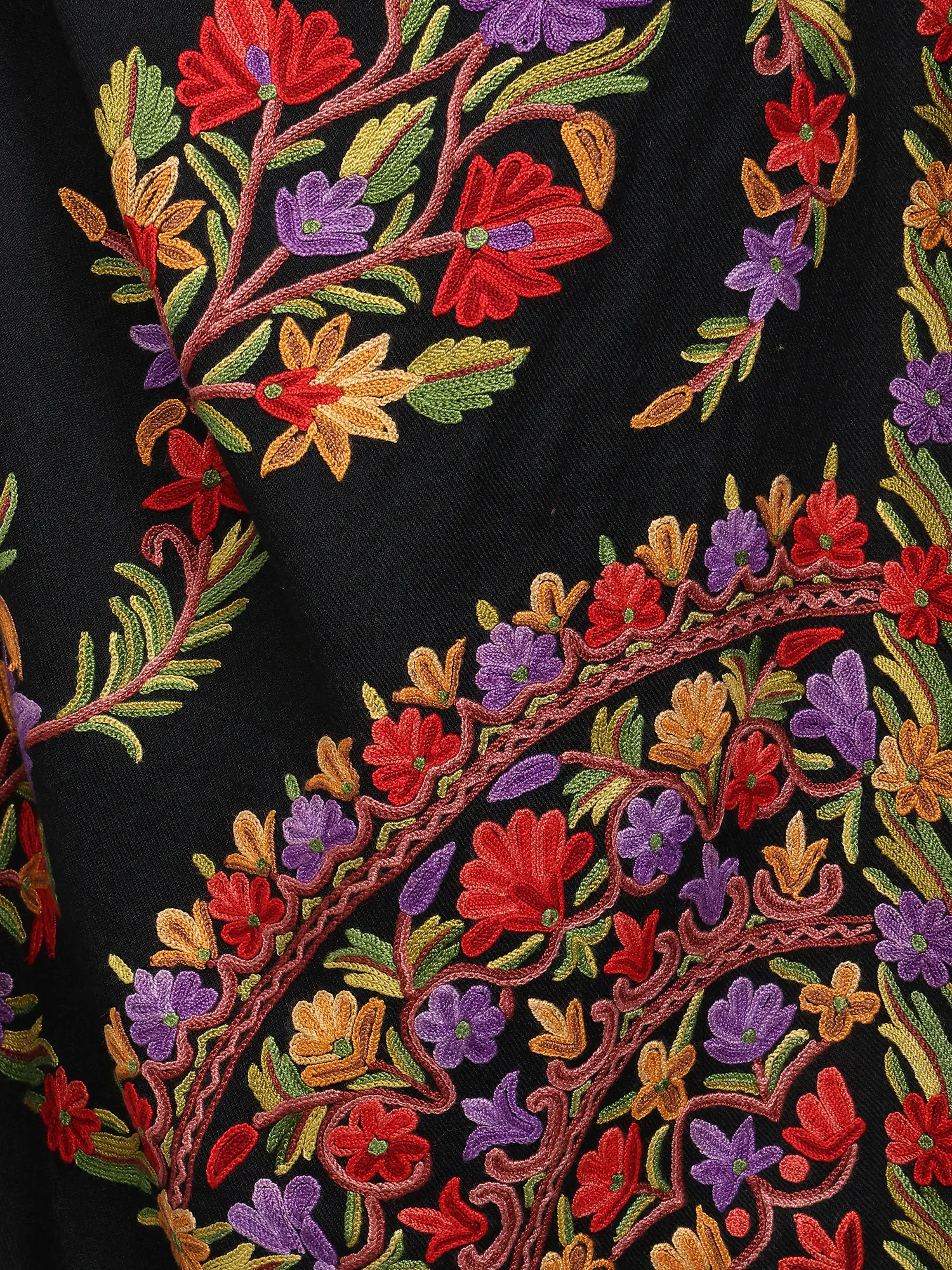 Kashmiri Stole with Aari Hand-Embroidered Bunch of Flowers All-Over