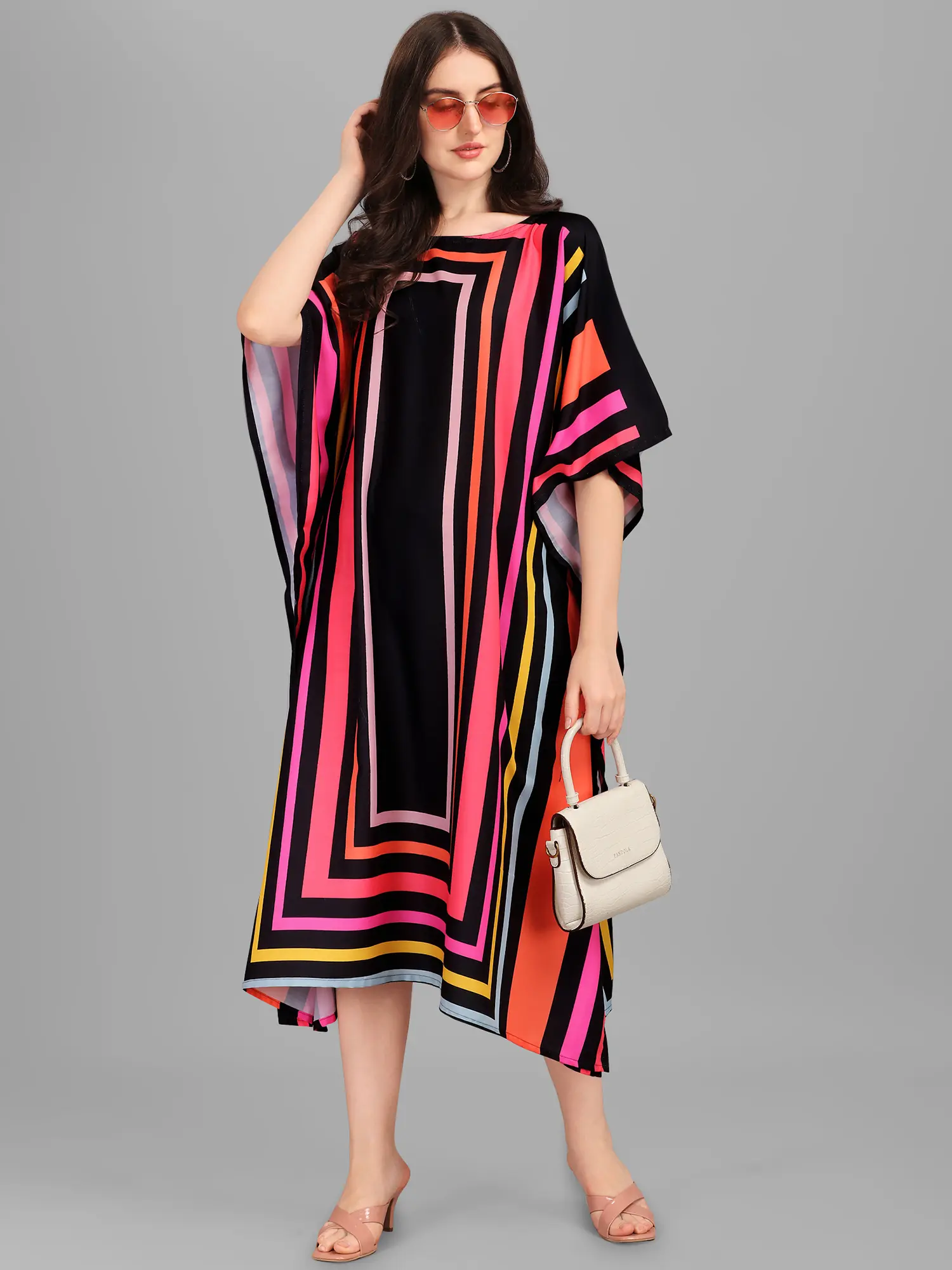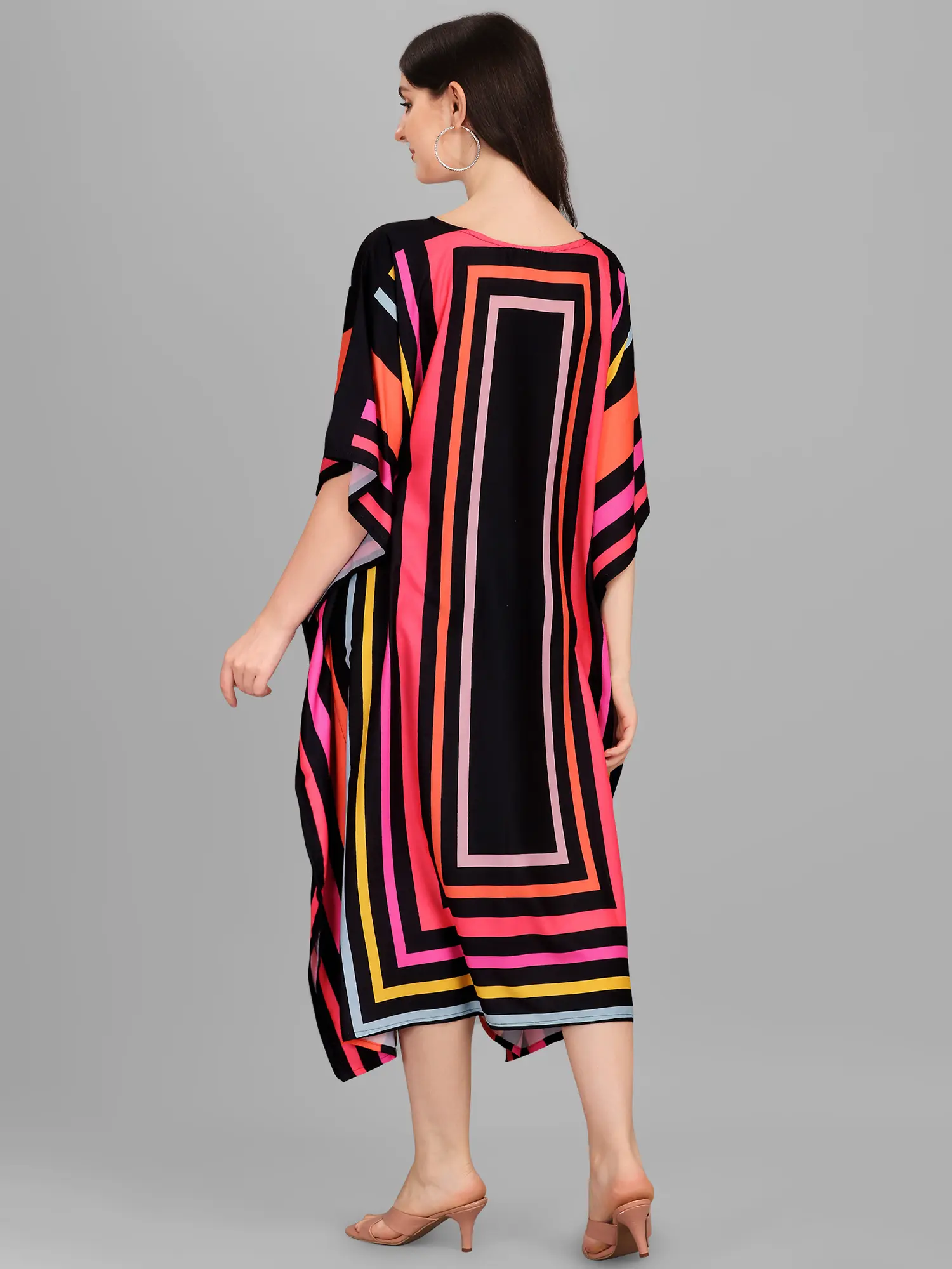 Rainbow Stripes Printed Long Kaftan with Internal Drawstring