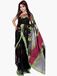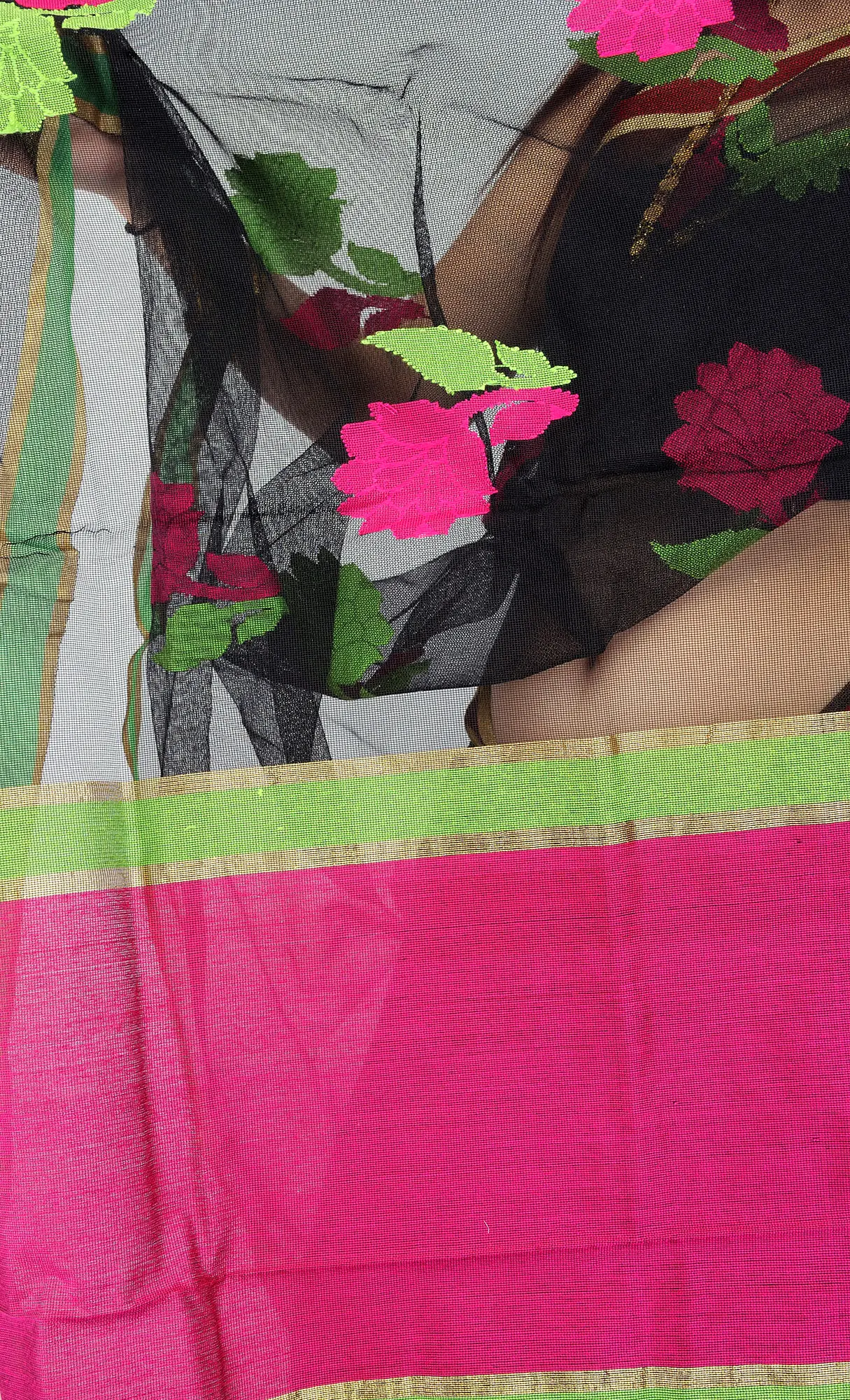 Jet-Black Stole from Amritsar with Woven Flowers and Paisleys