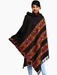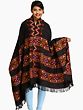 Adding to its beauty is the gorgeous embroidery done in fiery pastels such as red, orange, and blue. The zigzag weave that you could zoom in on has a special name, kinnauri, that is endemic to Himachal Pradesh. There are three thick and spaced out panels of coloured weave from the border upwards, which dominate the field of the shawl. Its inky black base colour, interspersed with some inevitable bits of white observable upon zooming, serves to bring out the charm of the kinnauri. Team this with a statement evening saree at a gala in the height of the winters.