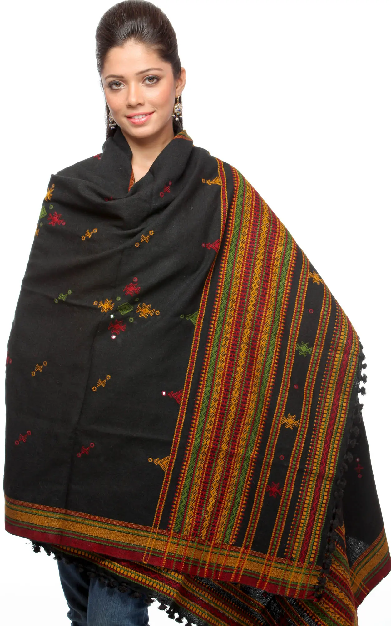Woolen Plain Shawl from Kutch with Mirror Embroidery