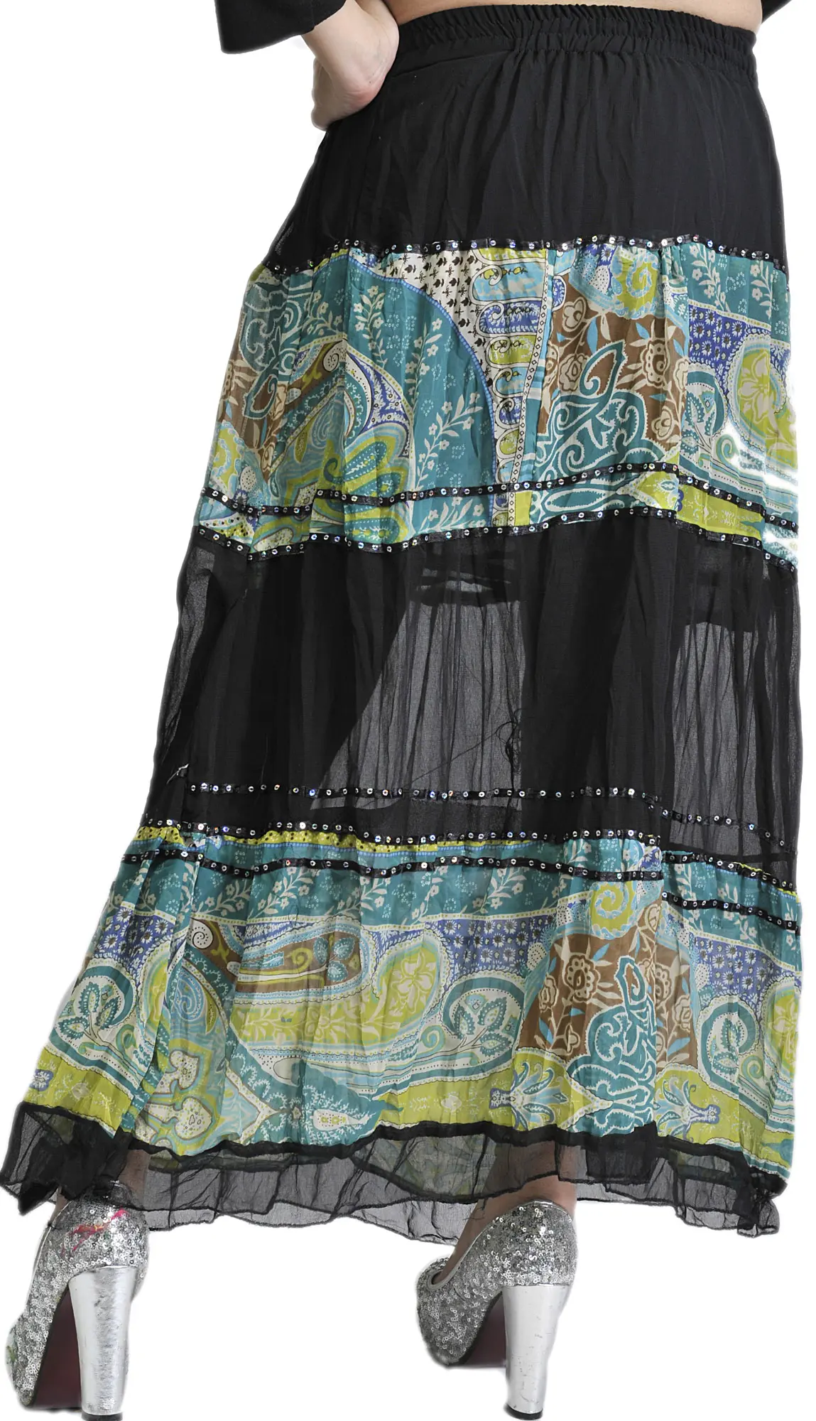 This skirt, made from luxurious chiffon, perfectly blends elegance with a touch of bohemian flair. The enchanting paisley motifs represent creativity, spirituality, and the endless cycle of life, providing depth to your look. This skirt seamlessly transitions from daytime to evening wear, making it ideal for a night out or special events. This beautiful creation emanates charm and refinement, allowing you to embrace your uniqueness and make a statement. Pair it with a basic top to highlight the skirt, or layer it with vibrant accessories for a dramatic flair.