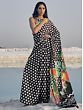 The playful polka dot pattern adds a fun element, ensuring a stylish and dynamic appearance. The Black Soft Crepe Printed Saree is a delightful fusion of comfort and classic charm.