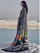 Crafted from soft crepe, it offers a comfortable and graceful drape. The black base adorned with white polka dots creates a classic yet contemporary look, perfect for various occasions.