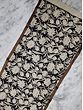 The negative space of this Kalamkari enhances the beauty of this Bangalore silk dupatta. This style is known for its vibrant colors, but sometimes they use only black color as ink and often feature floral patterns, Persian motifs, and scenes from nature. This piece holds a beautiful piece of nature showing its simple aesthetic— Lotus flowers in its three stages of life form, fishes under the lake, and birds.
