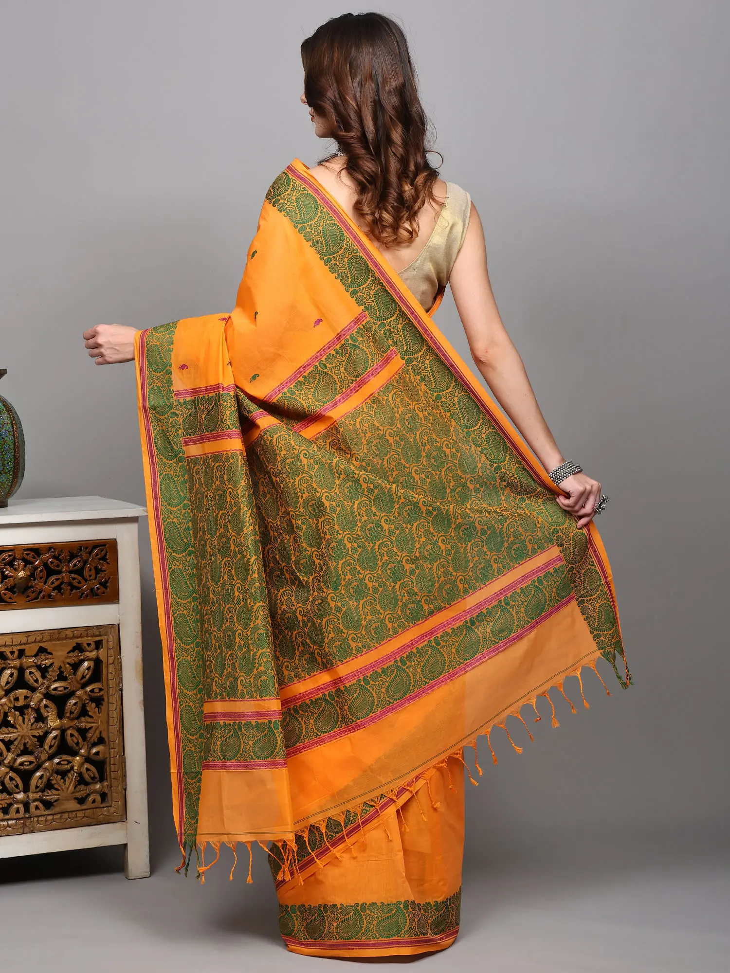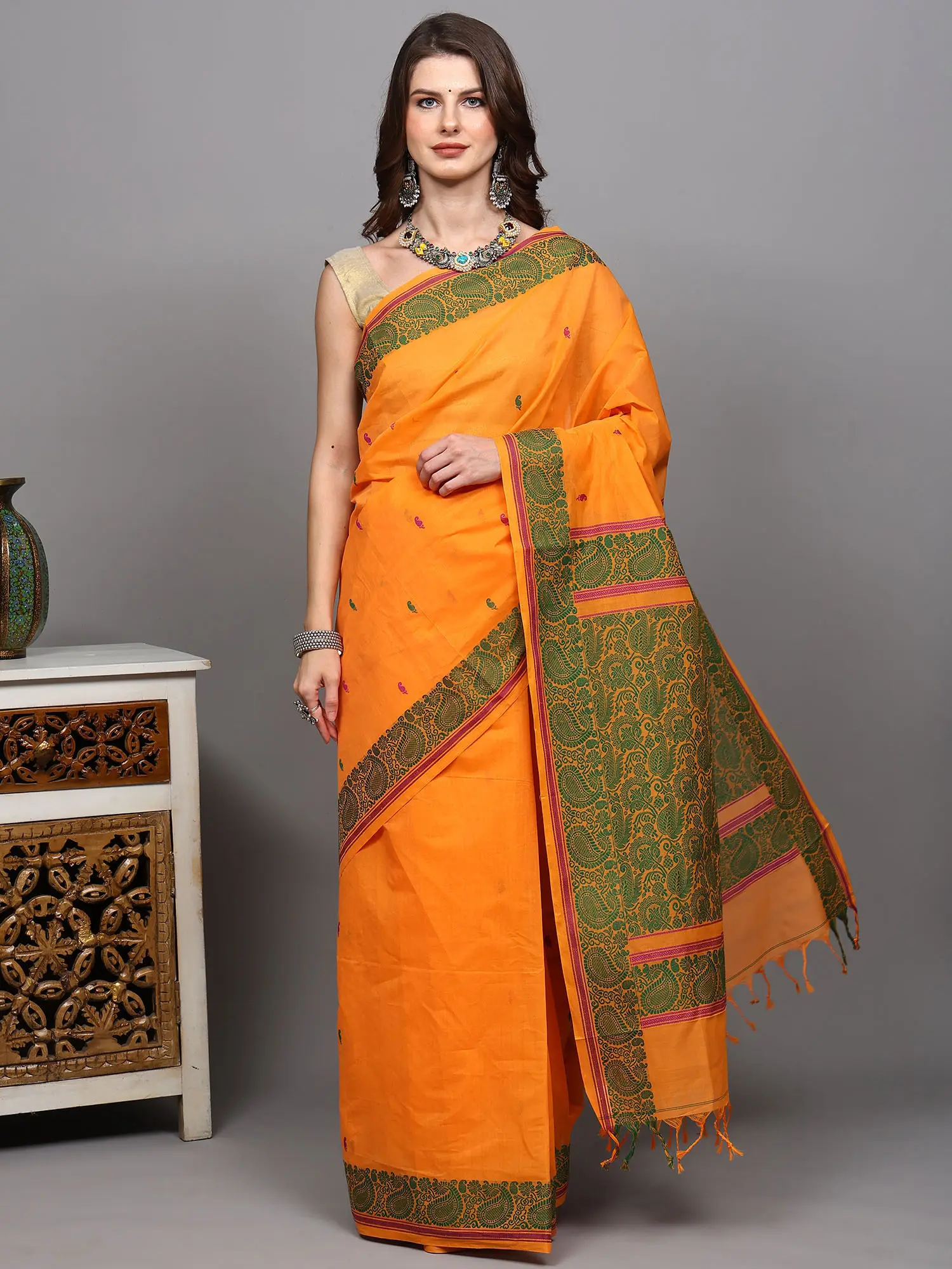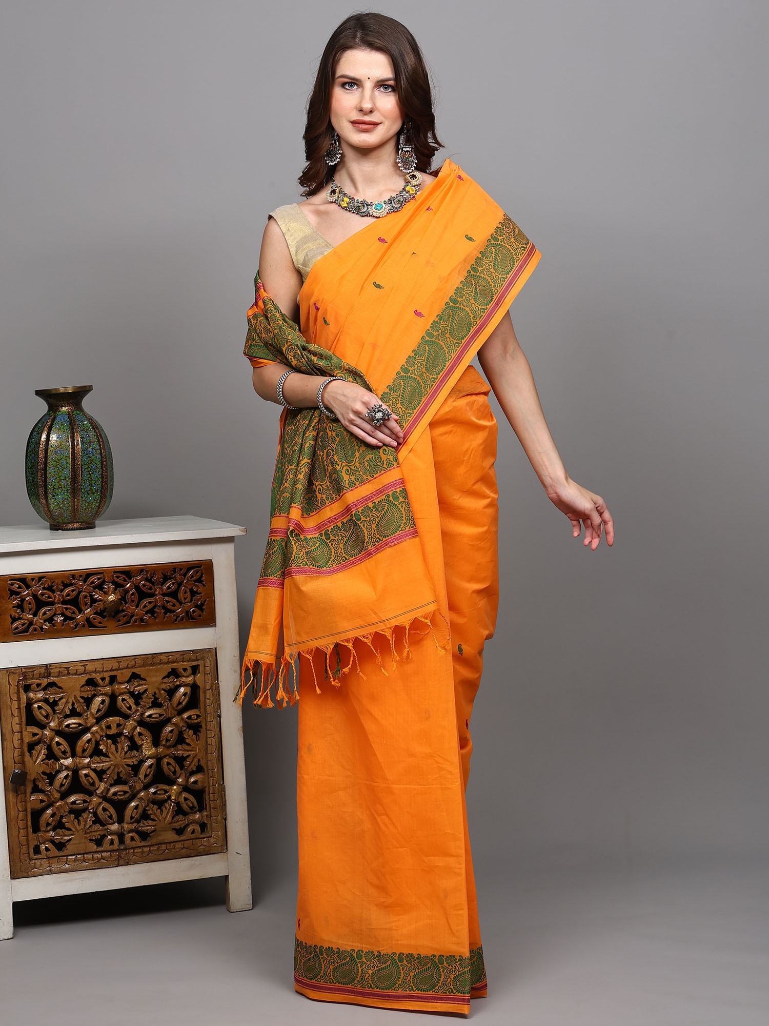 Arctic-Wolf Bootis woven Pure Cotton Saree with Kilim Pattern Border and Zari work