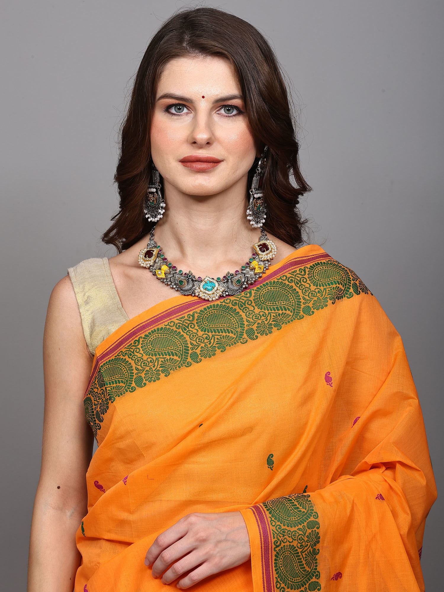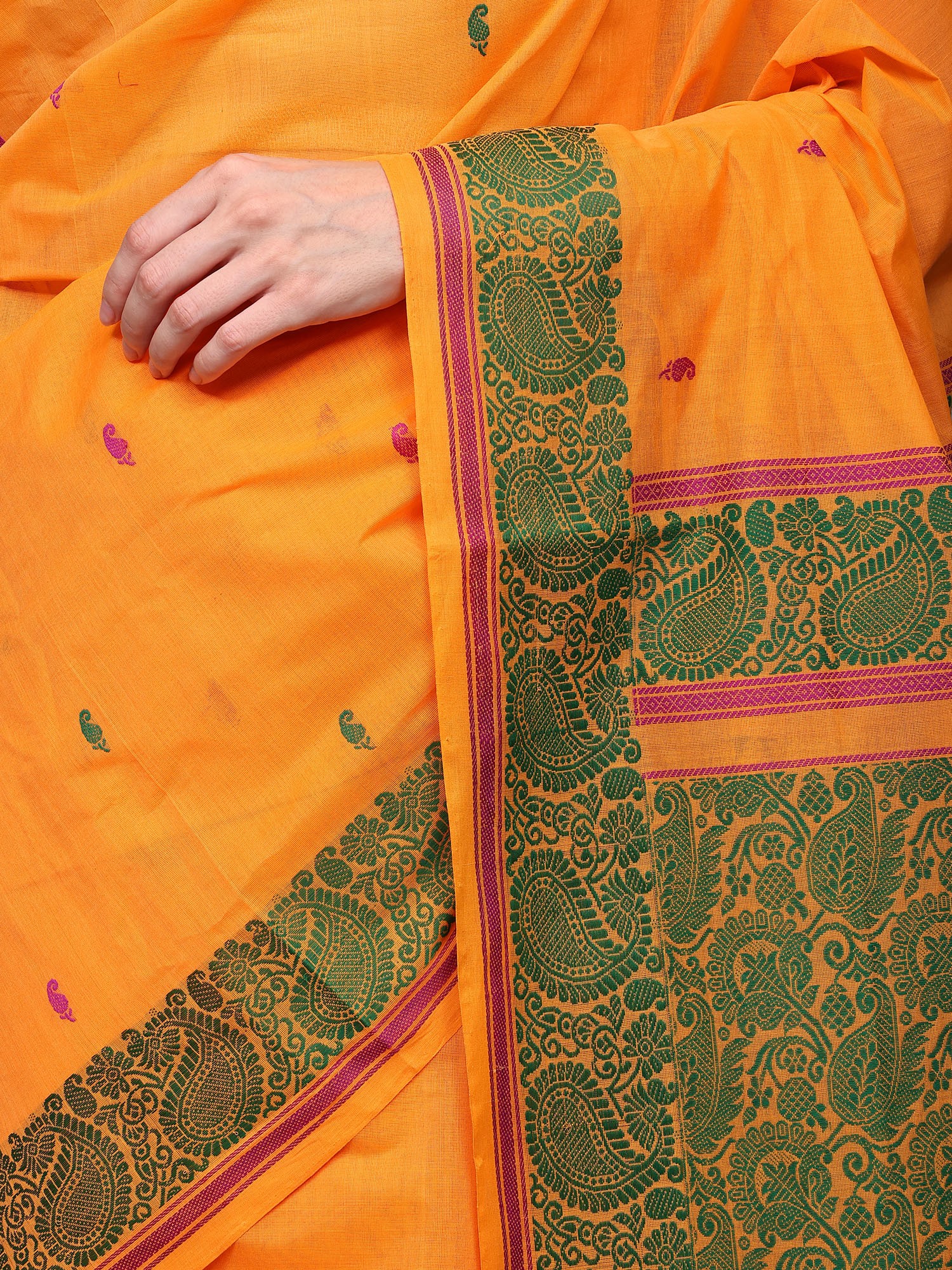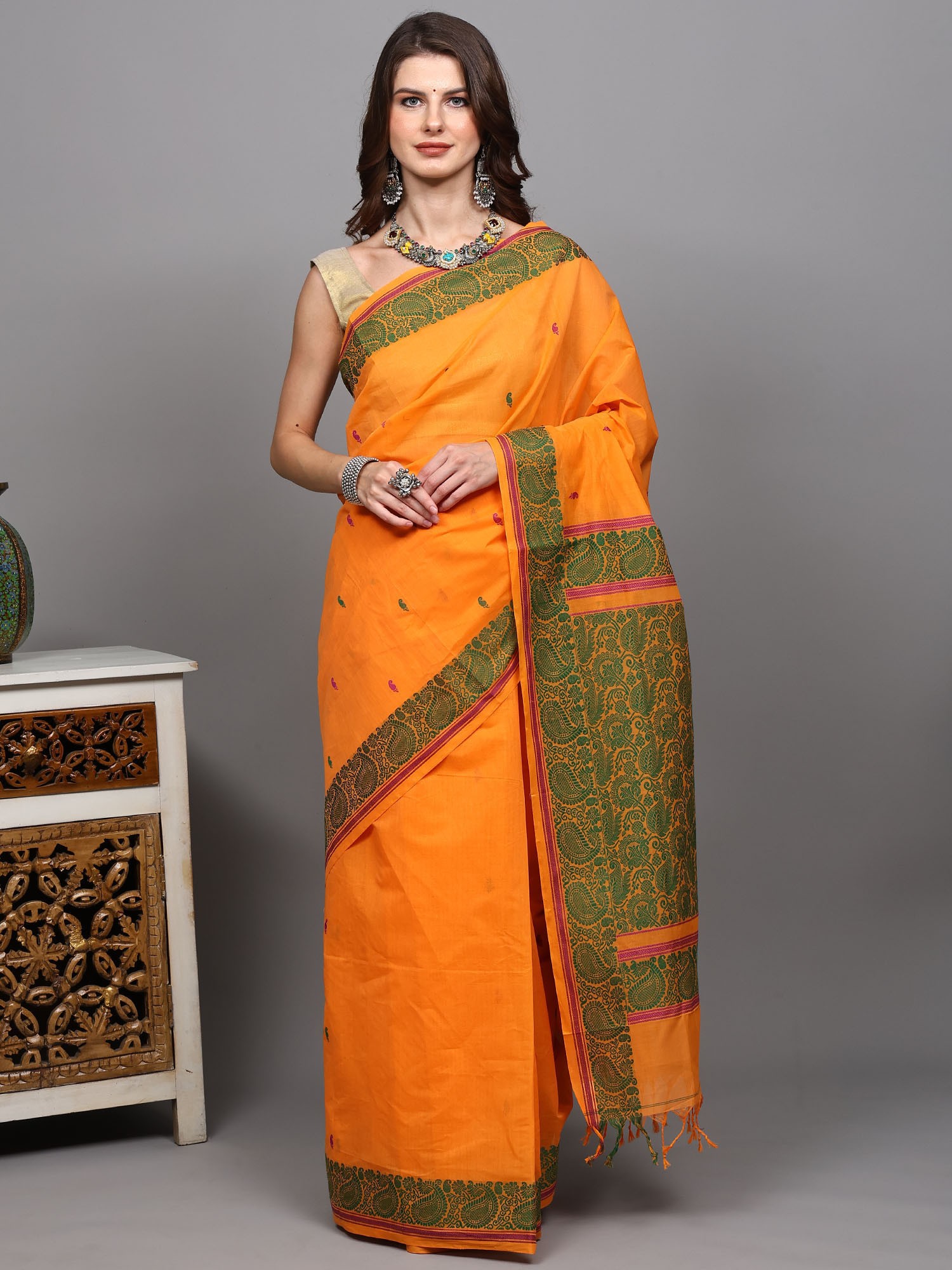 Arctic-Wolf Bootis woven Pure Cotton Saree with Kilim Pattern Border and Zari work