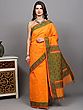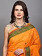 Crystal-Seas Pure Cotton Saree with Ikat Weave and Temple Border from Coimbatore