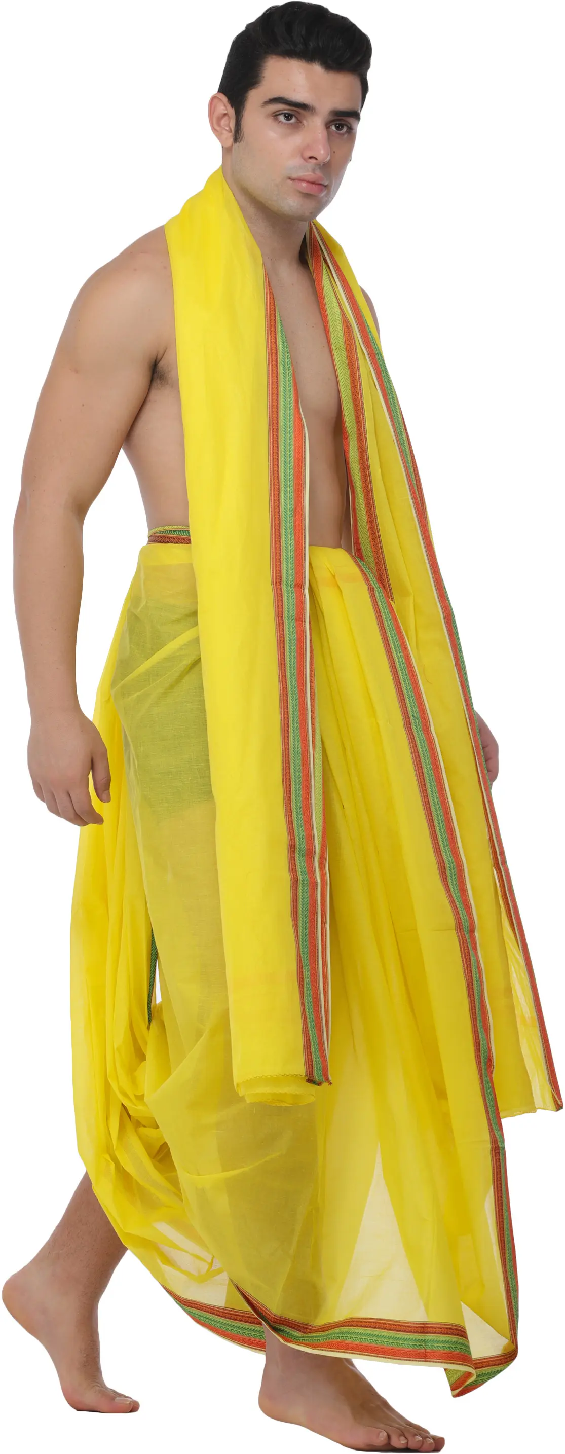 Ready to Wear Dhoti and Angavastram Set with Meenakari Woven Golden Border