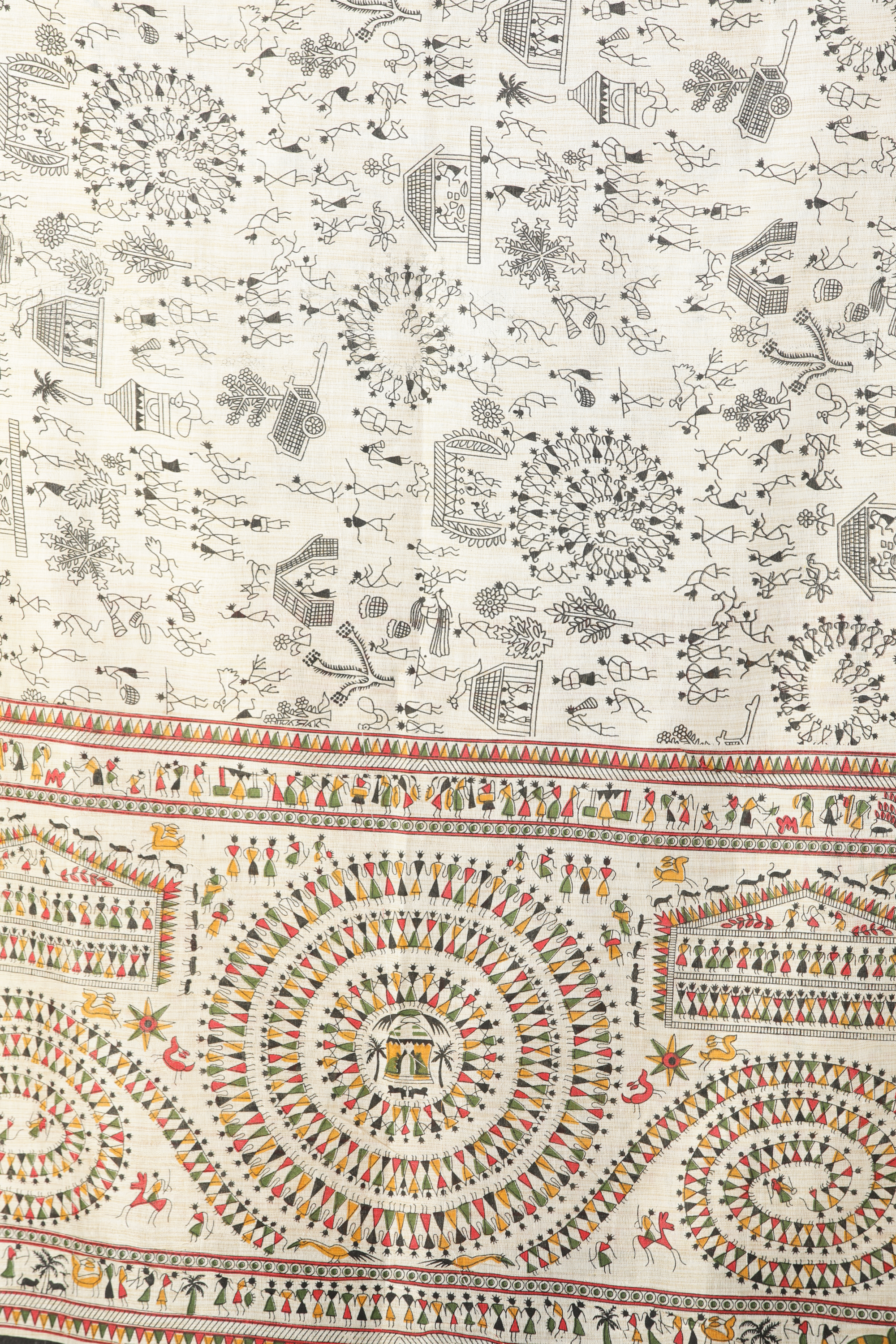 Bleached-Sand Dupatta from Jharkhand with Warli Folk Print