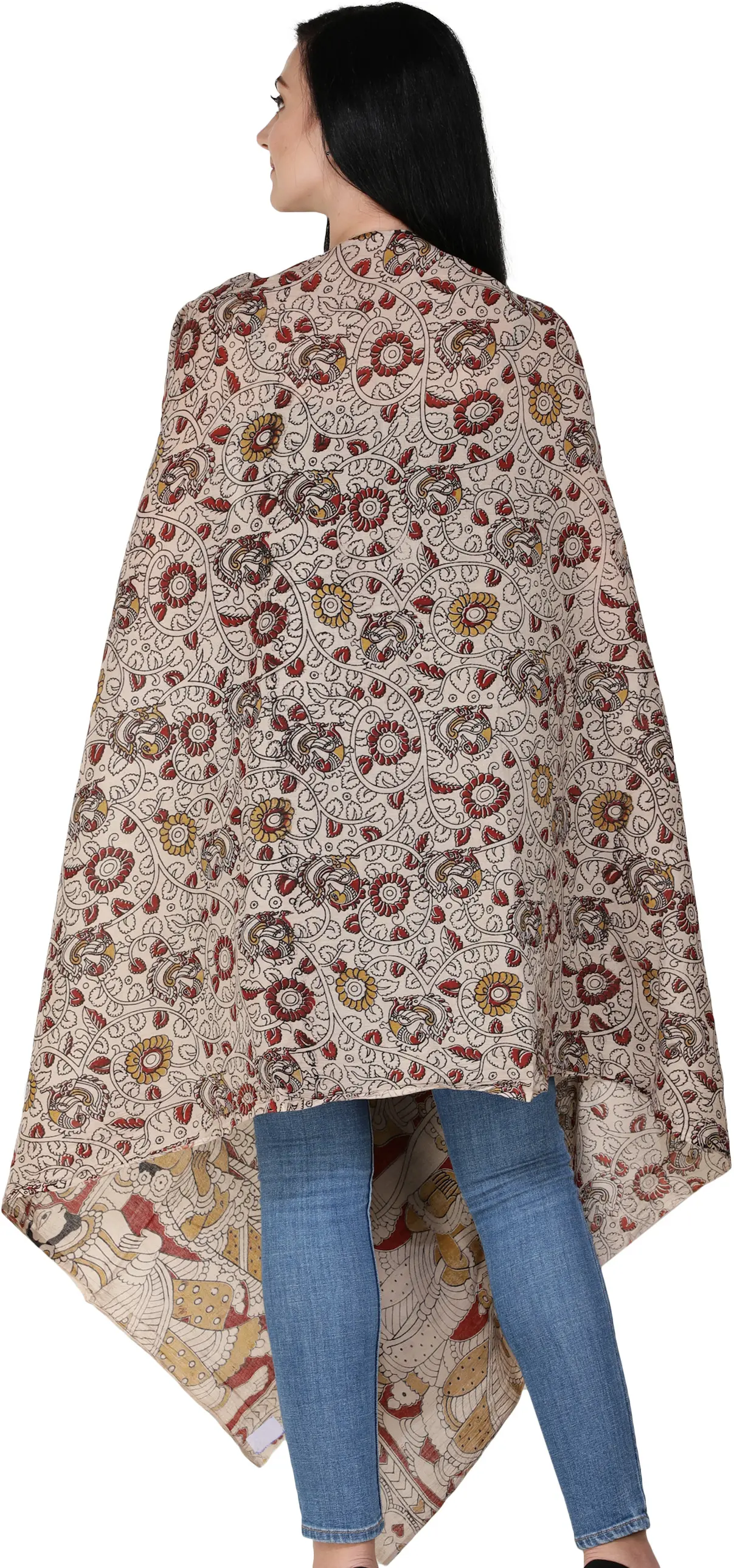 Stretch-Limo Kalamkari Dupatta from Telangana with Zari Border and Printed Paisleys