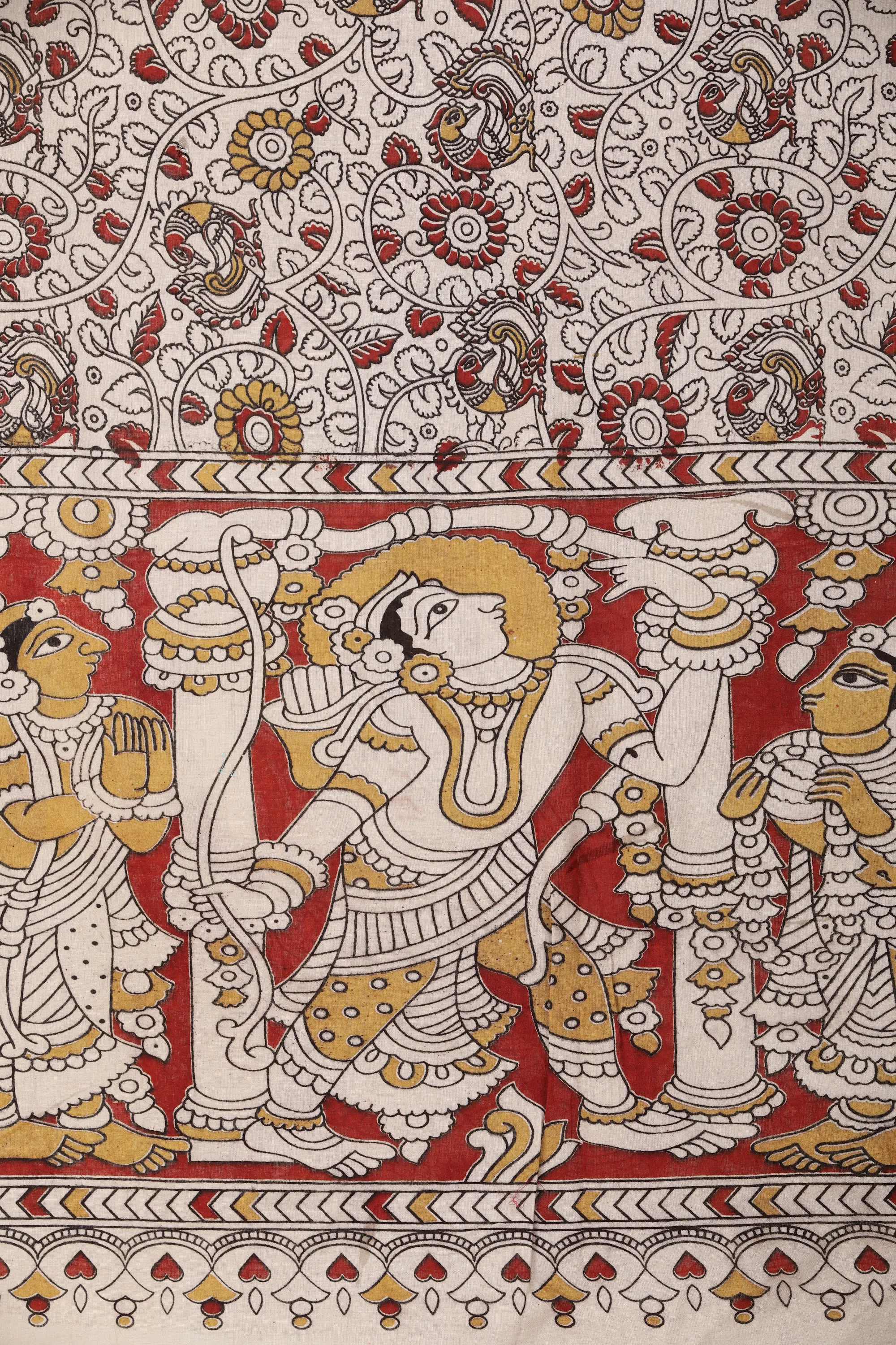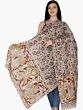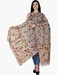 Anise-Flower Kalamkari Dupatta with Hand Painted Lotuses-Elephant and Zari Border