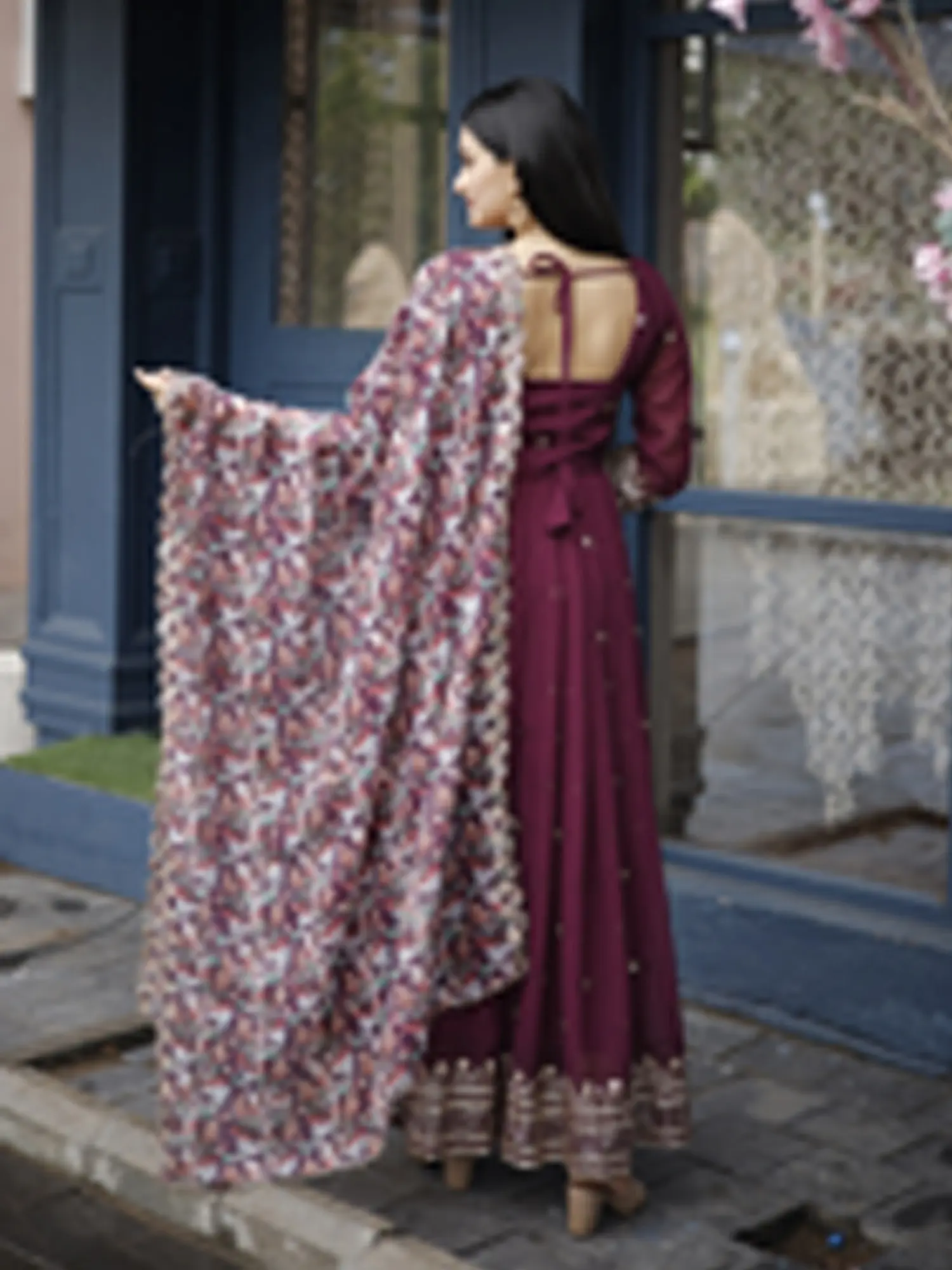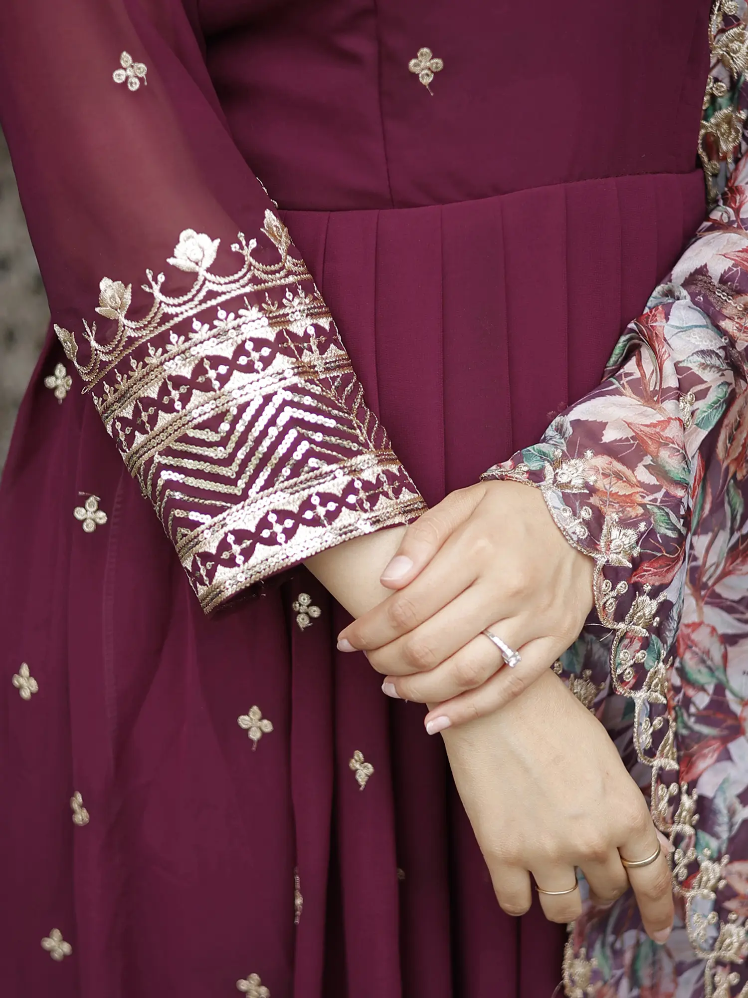 Blooming Georgette Wine Suit and Embroidered Zari Sequins-Work