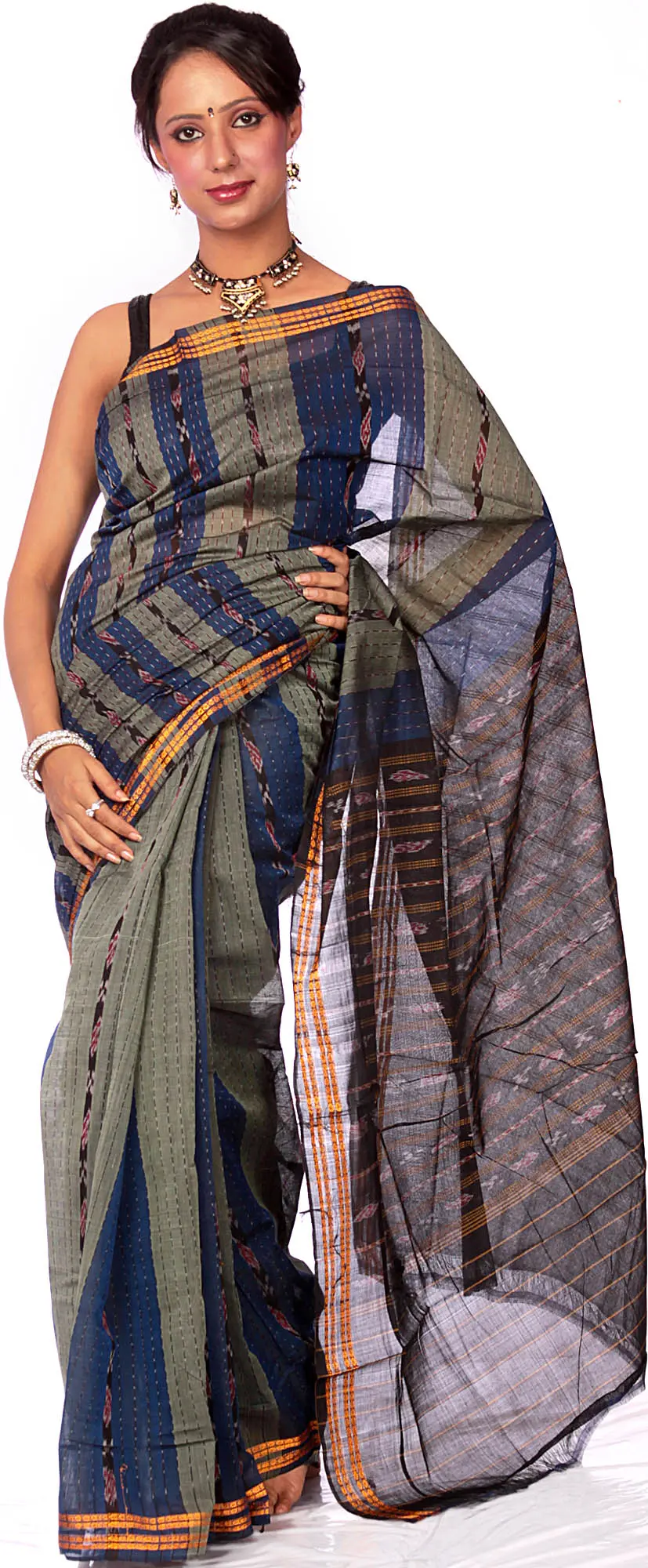 Discover the timeless elegance of this exquisite Sambhalpuri Ikat saree, a masterpiece woven from the heart of Orissa. Crafted from pure cotton, this saree embodies a rich tradition of textile artistry passed down through generations. The intricate Ikat technique, where the threads are dyed before being woven, creates a mesmerizing visual effect that is both striking and sophisticated.