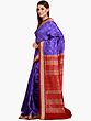 Blue and Maroon Sambhalpuri Handloom Sari from Orissa with Ikat-Woven Flowers