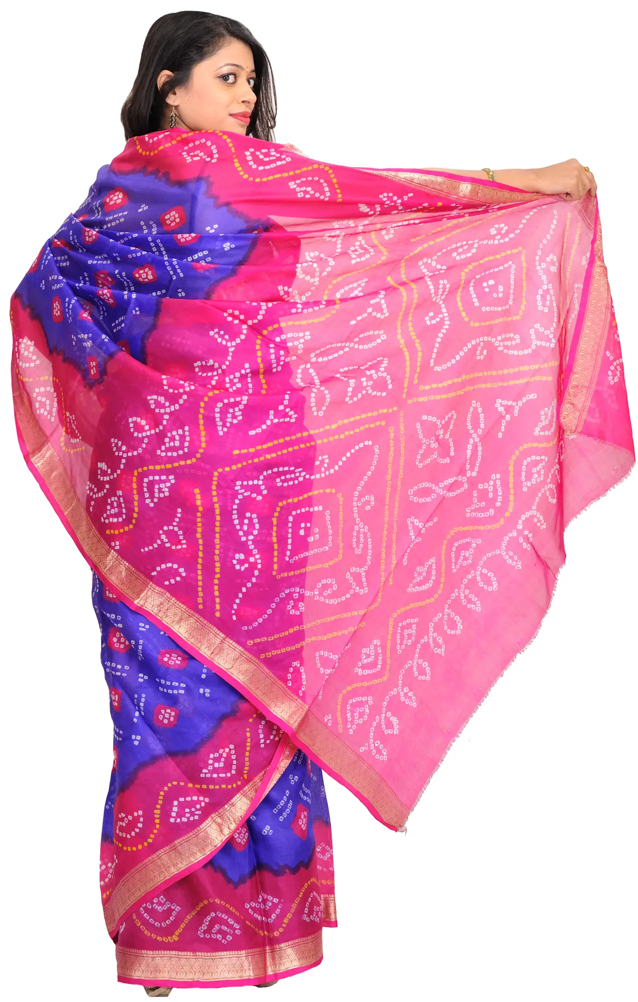 Multicolor Bandhani Marwari Sari from Jodhpur with Leharia Print