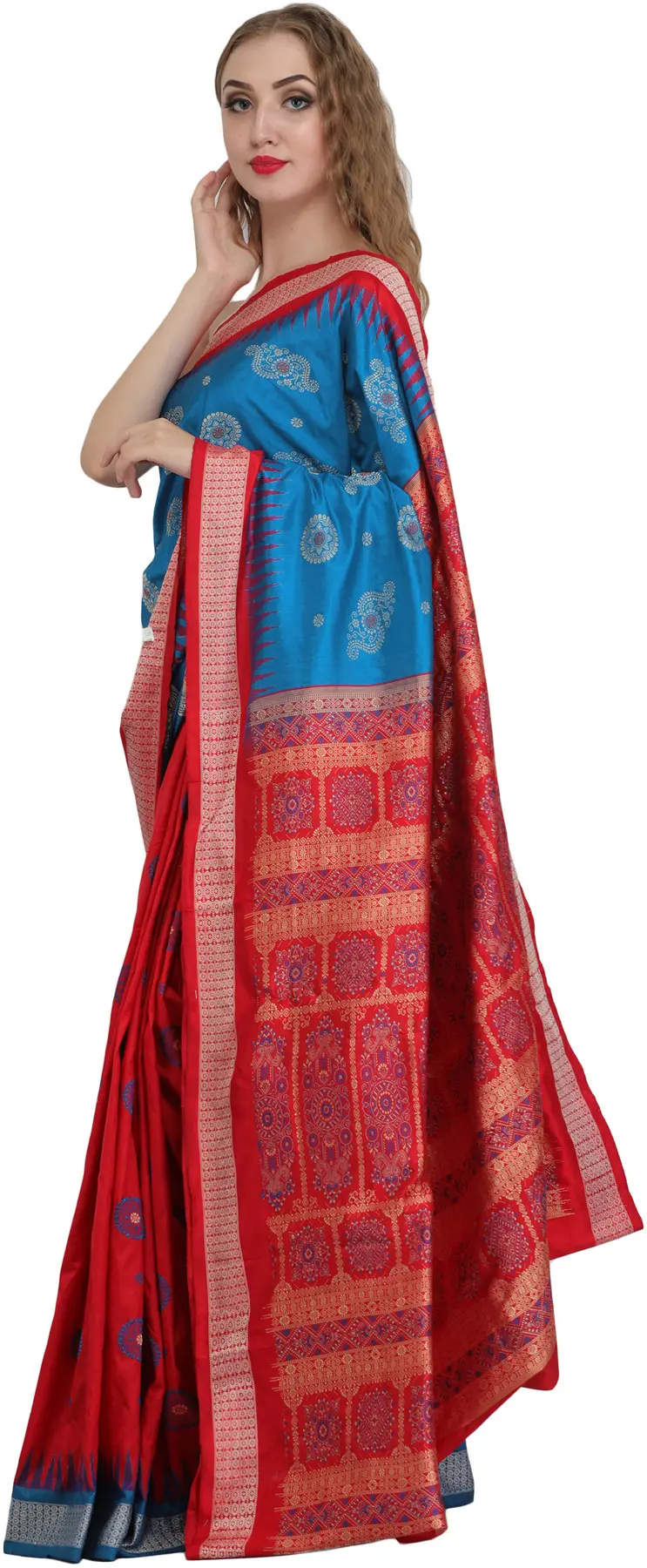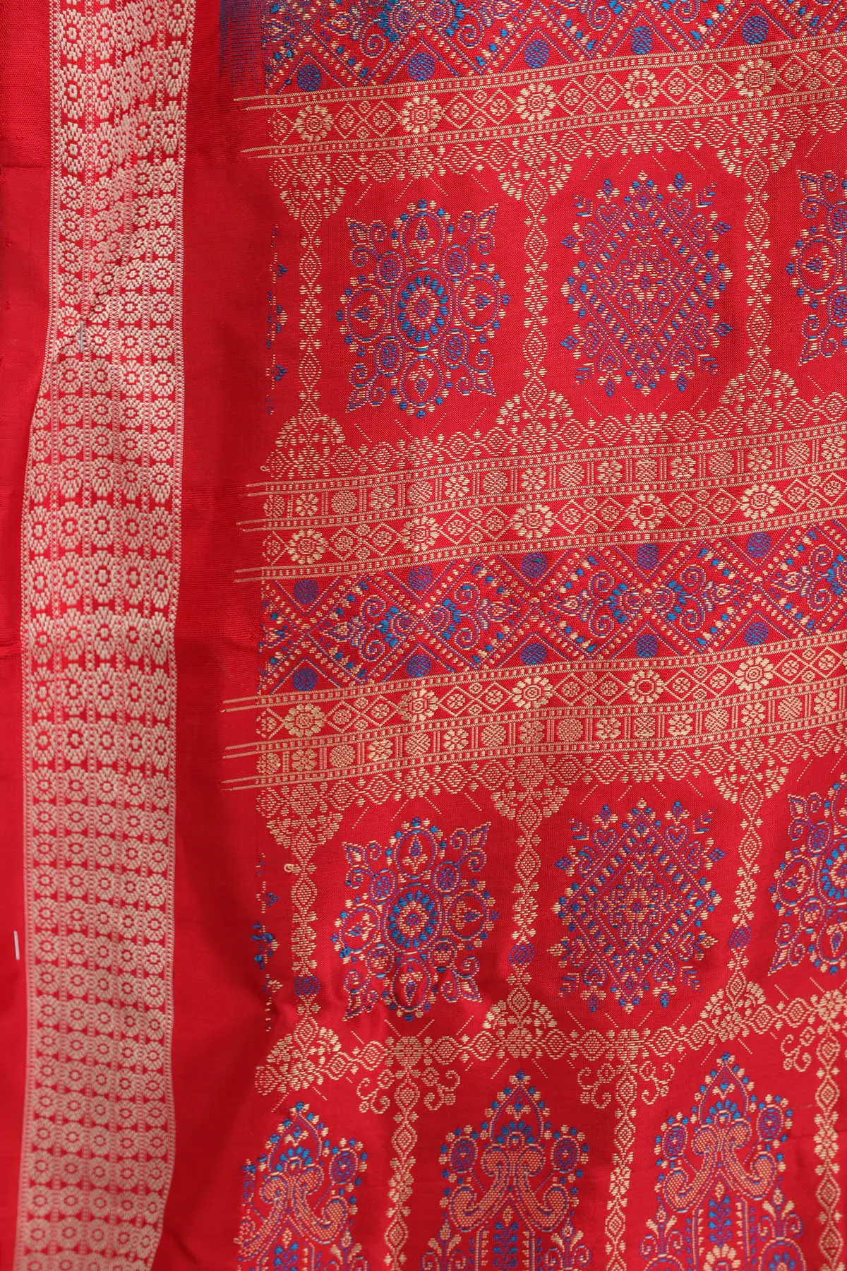 Aurora-Red Dola Silk Saree with Printed Bootis and Zari Woven Floral Vine Border