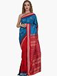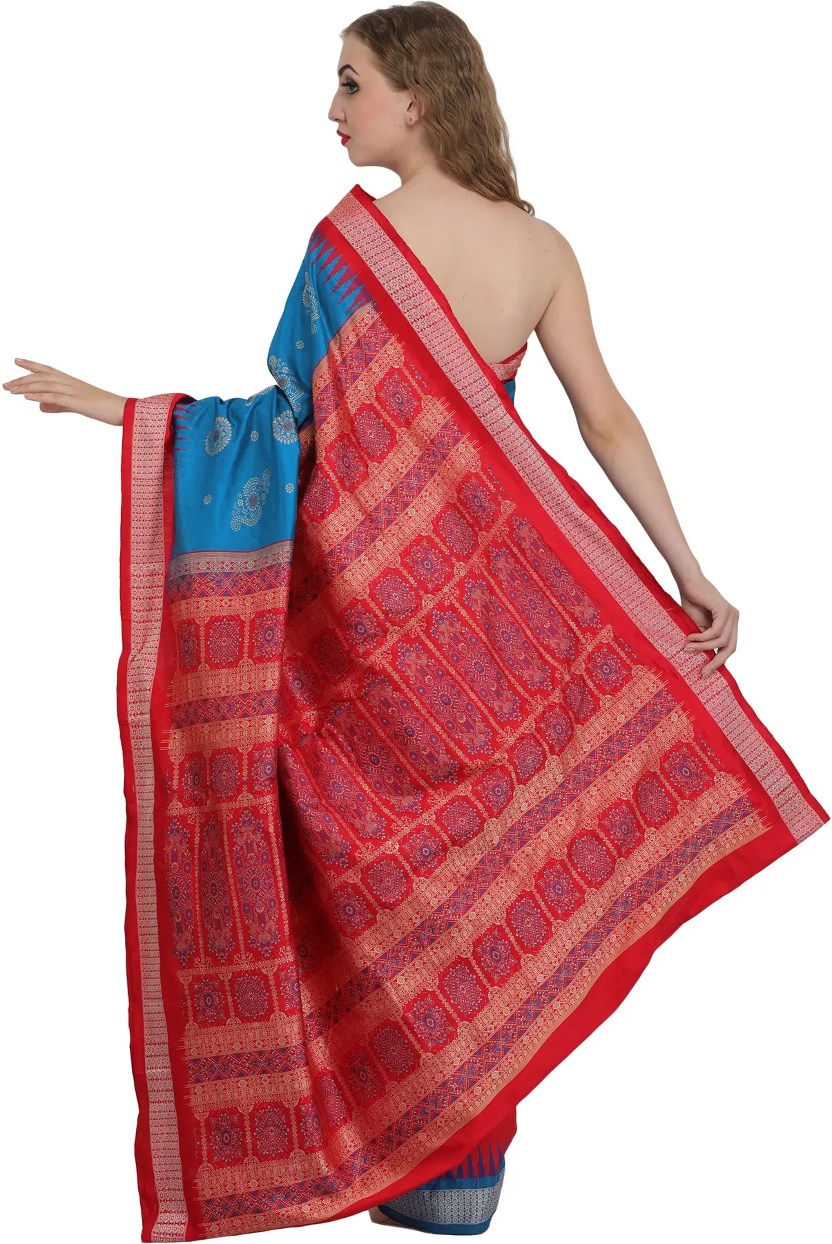 Maritime-Blue Modal Silk Printed Saree with Floral Vine Border from Madhya Pradesh