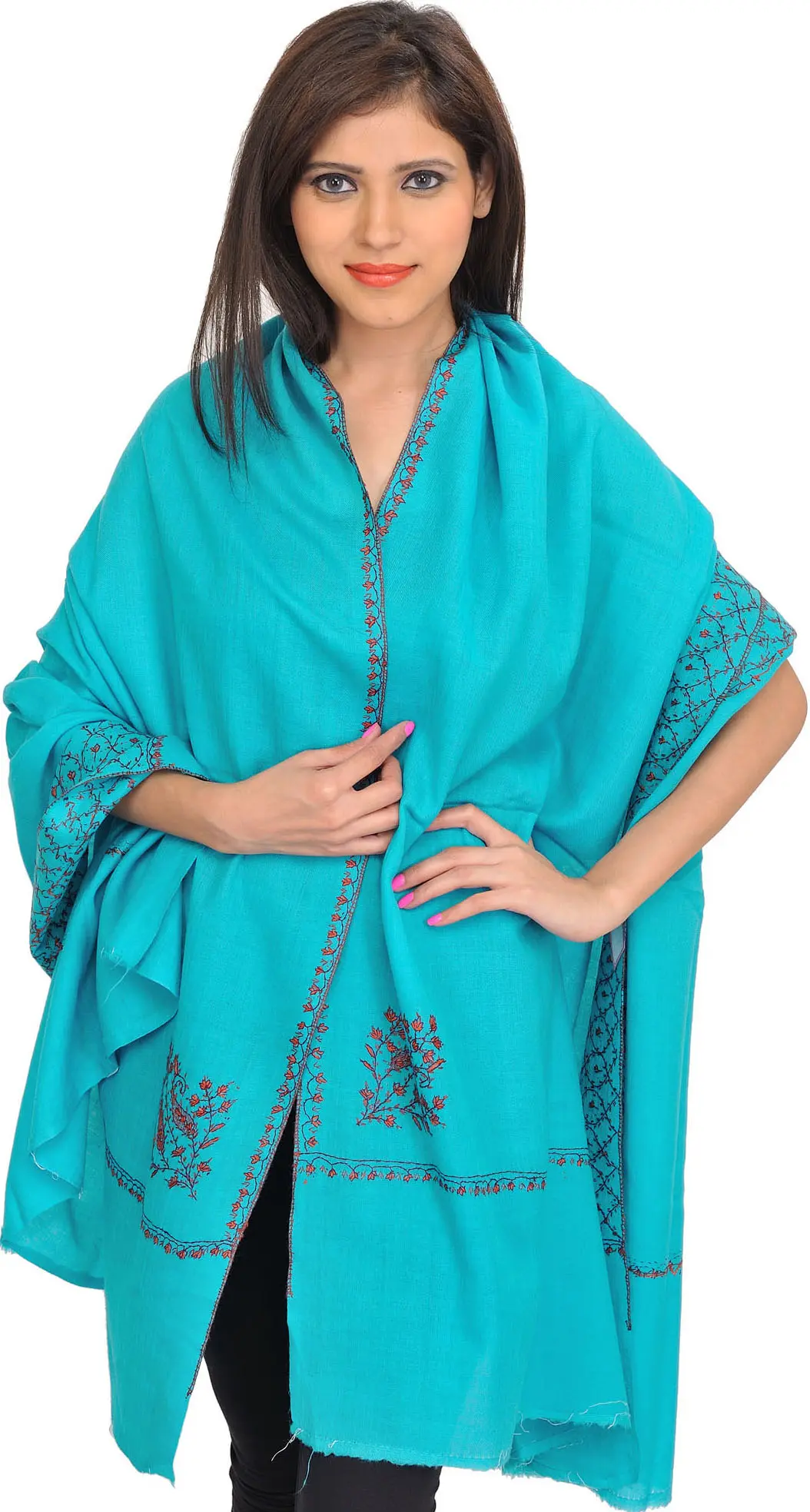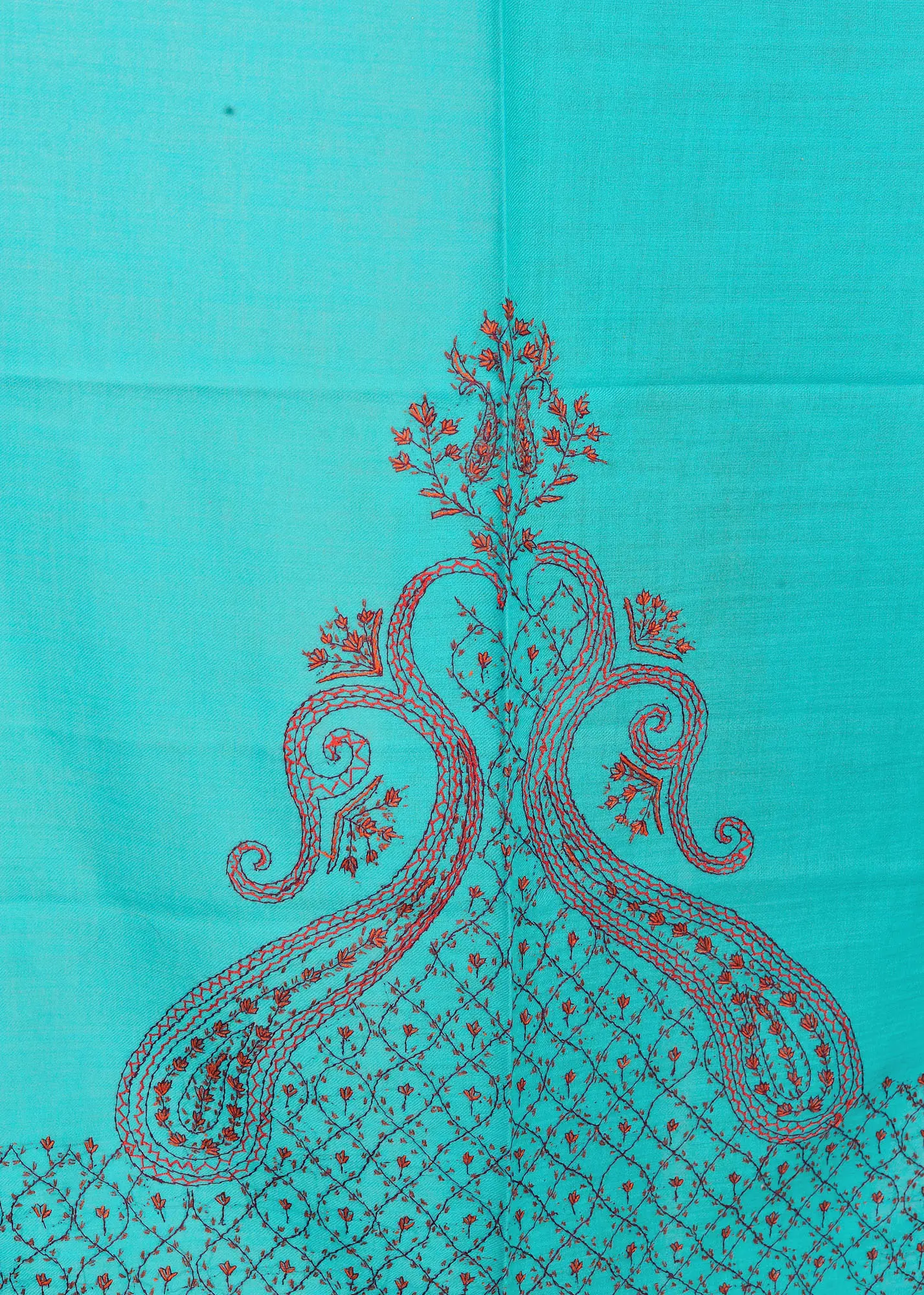 Pure Tusha Shawl from Kashmir with All-Over Needle Embroidery by Hand