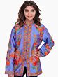 Denim-Blue Jacket from Kashmir with Crewel Embroidered Flowers