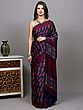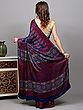 Red-Plum Silk Saree with Bagru Block Printed Floral Vine Motifs from Madhya Pradesh
