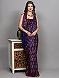 Blue-Depths Saree with Block Printed Floral Leaves All-Over from Madhya Pradesh